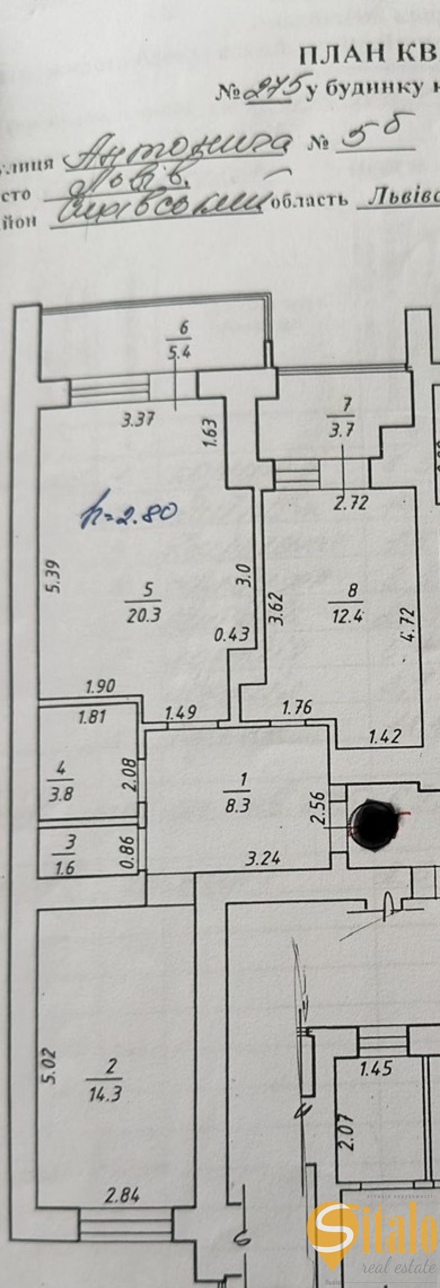 Загальна площа 69,8 м.кв.,житлова 35 м.кв., кухня 12,4 м.кв.