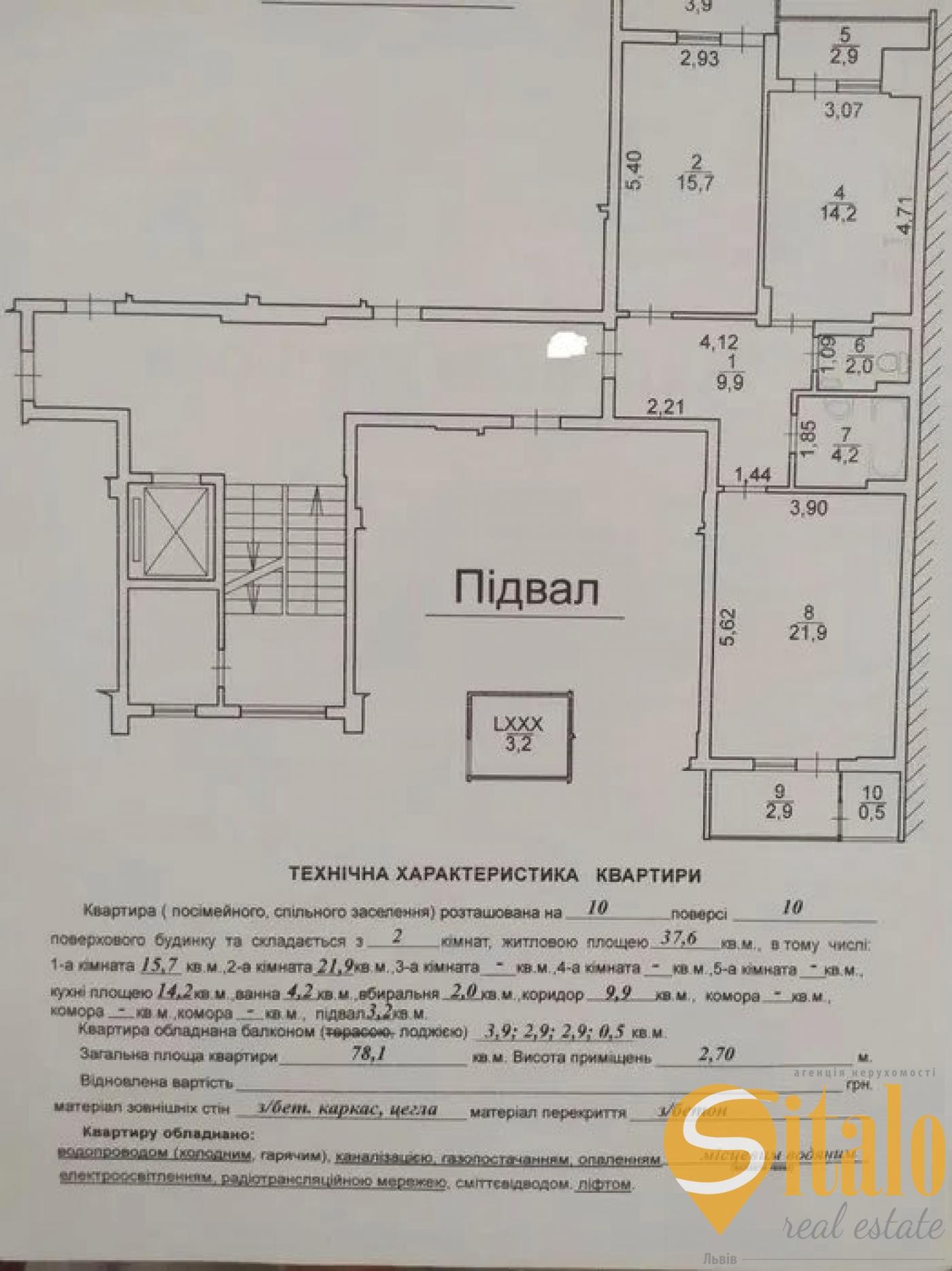 Продаж квартир Кравченко Уляні 8, 2 кімнати, площа (78/37/14)