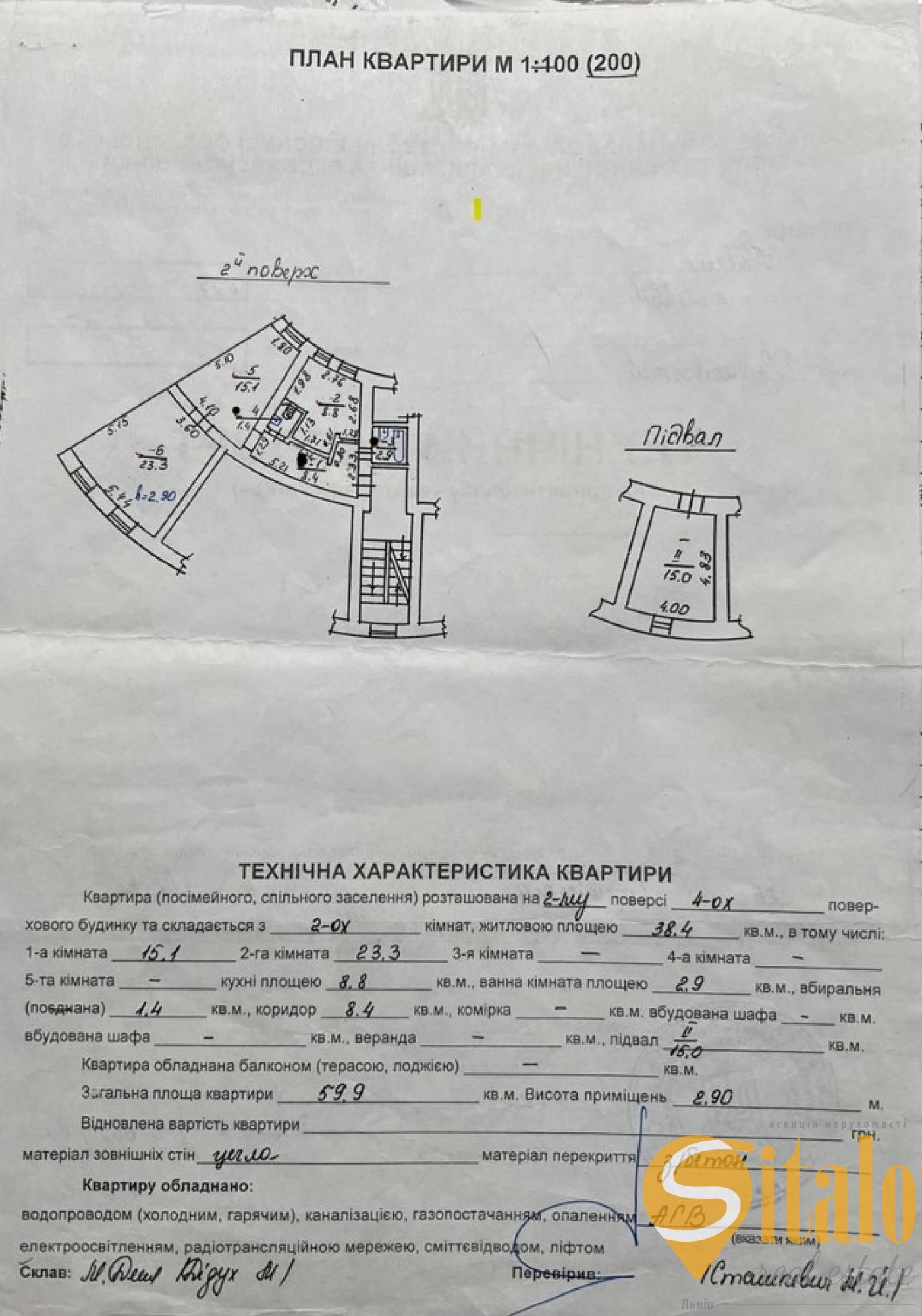 Є підвал з вікном, площею 15 м².