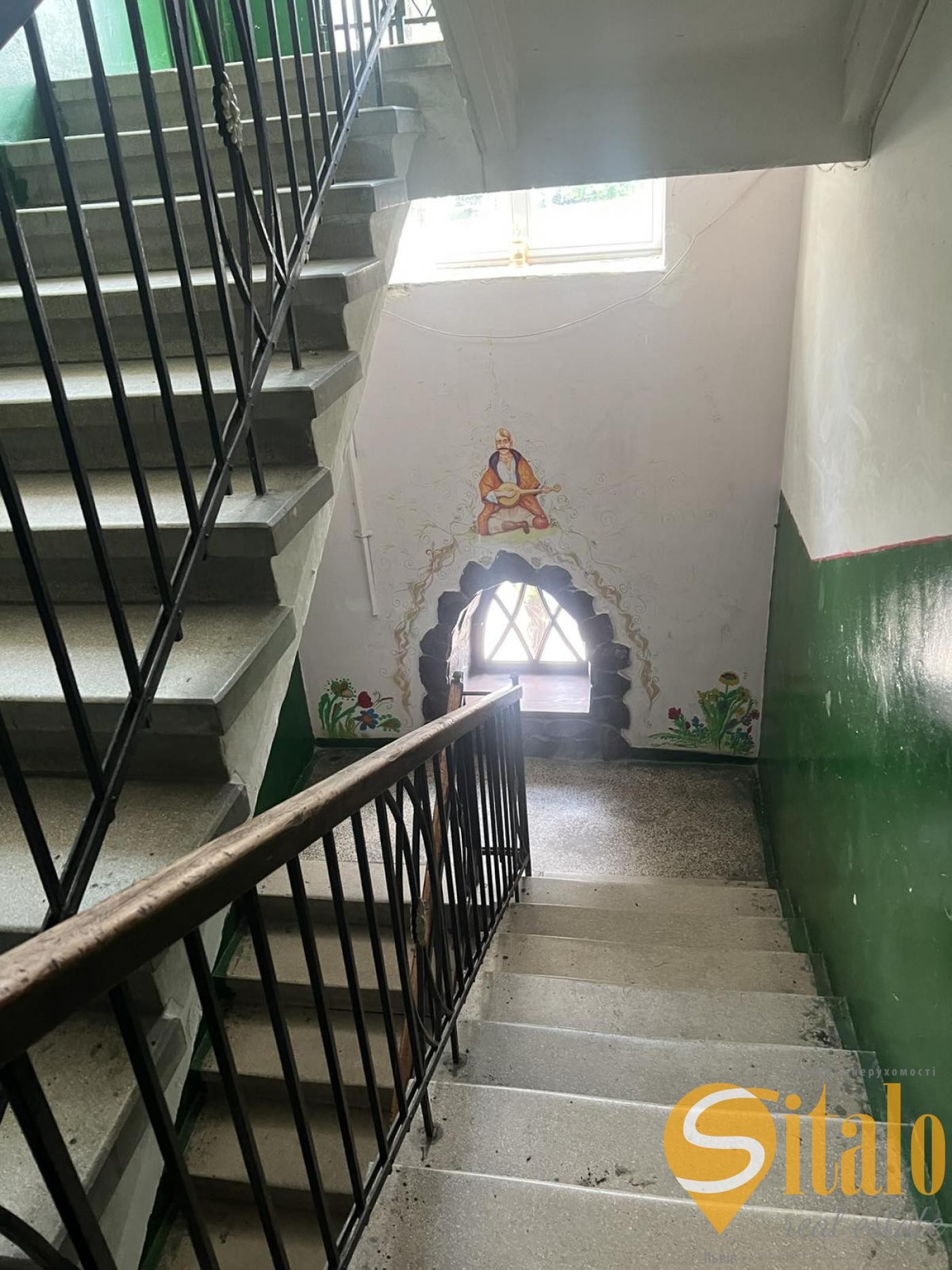 Великий внутрішній двір, Чистий, доглянутий під'їзд, залізобетонні широкі сходи (бетонна маса з дрібною мармуровою крихтою, відшліфована до гладкості), які витримують величезні навантаження.
