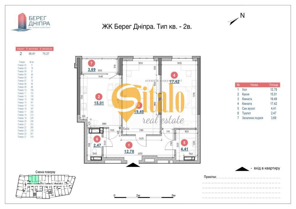 Продаж квартир Дніпровська наб. 17, 2 кімнати, площа (75.6/15)