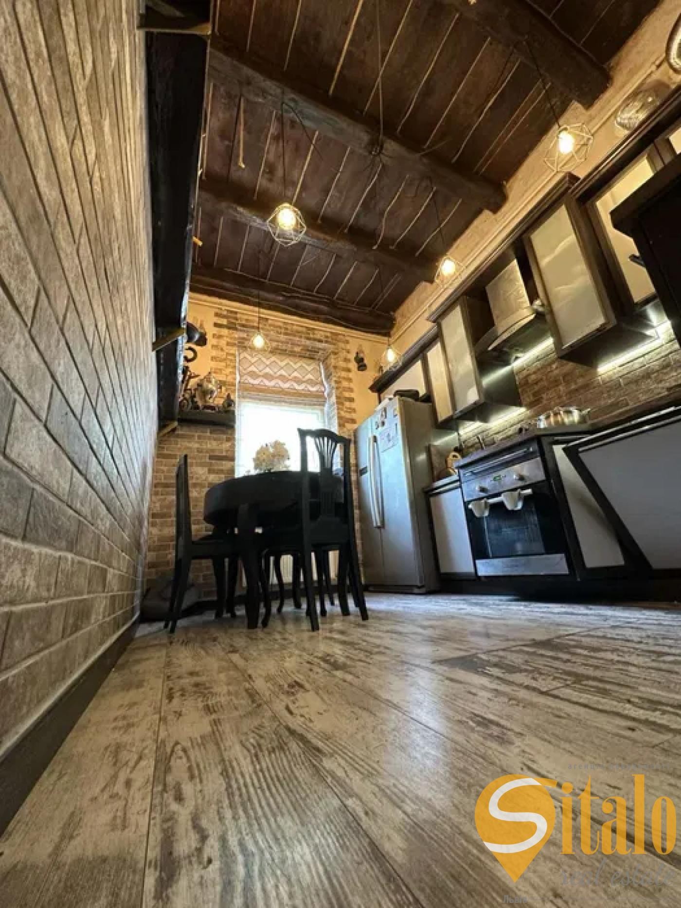 Загальна площа квартири 63 м², житлова 43 м², площа кухні 10.4 м². Додатково є підвал, площею 10 м²з фасадним вікном. Квартира двостороння, кімнати та вигоди ізольовані, є балкон. Зроблено ремонт за дизайнерським проєктом. Замінено усі комунікації, металопластикові вікна, броньовані двері, автономне опалення (котел Vaillant). Сучасний працюючий камін на дрова.