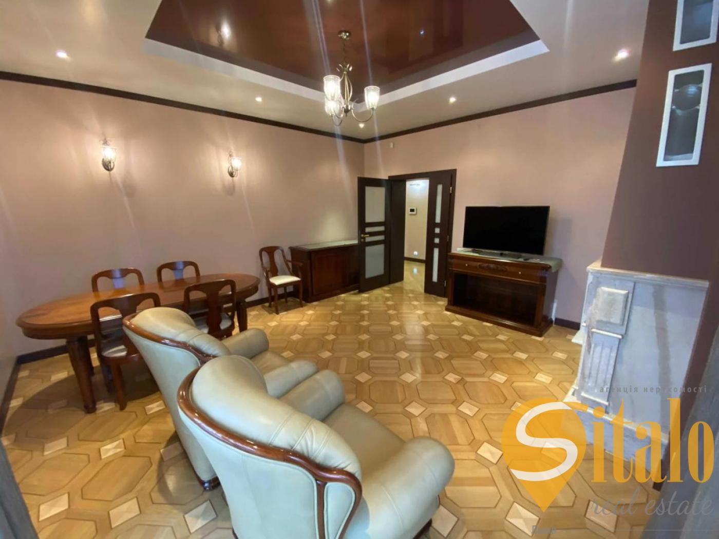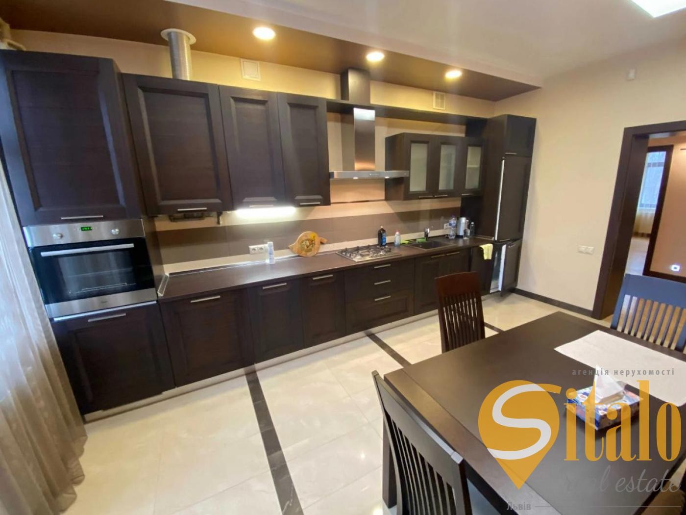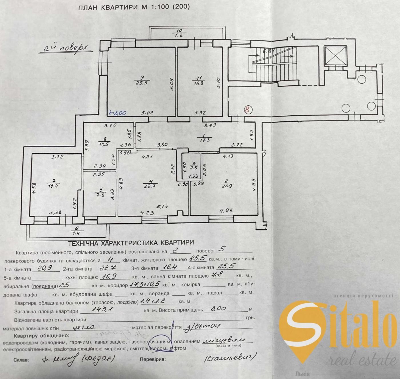 Загальна площа квартири 143 м,кв. житлова площа – 95 м.кв., кухня – 17 м.кв..
