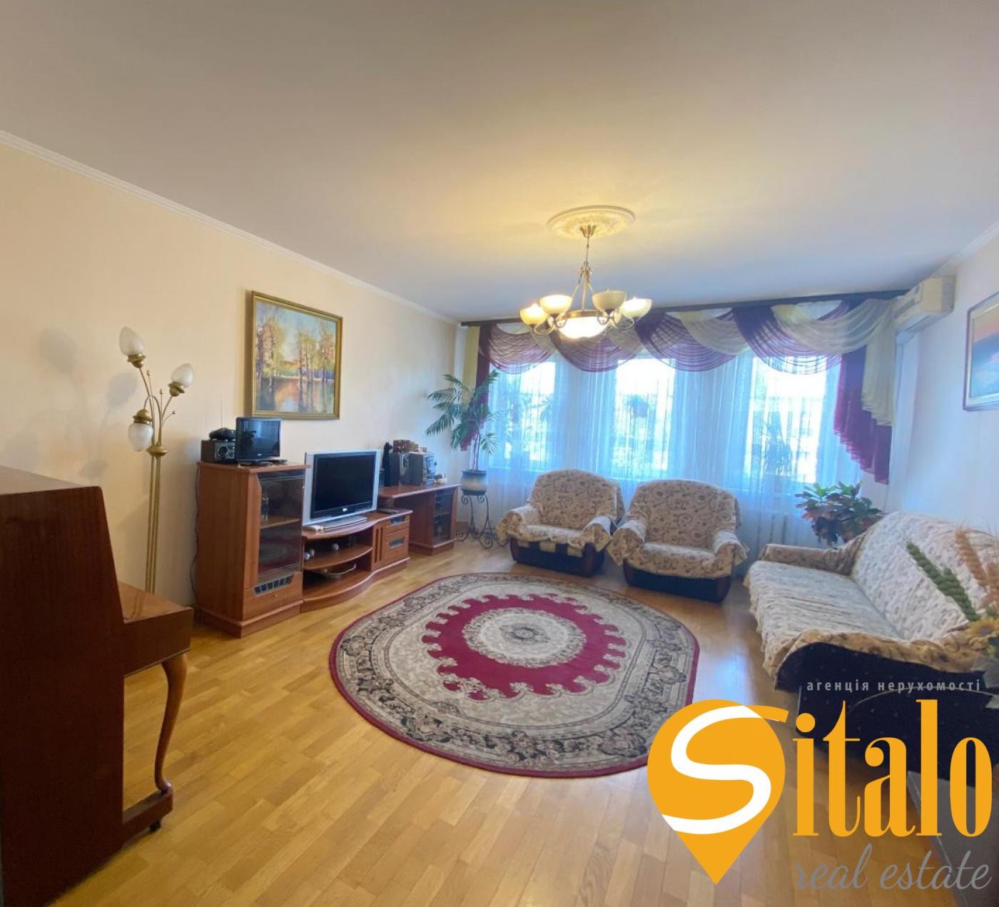 В квартирі виконаний ремонт з використанням натуральних матеріалів. Підлога по квартирі крім кухні - натуральний паркет, міжкімнатні двері натуральне дерево. Засклені балкон та лоджія (вихід з кухні). Два санвузли (ванна та душева кабінка), кахель. В кімнатах кондиціонери. Індивідуальні лічильники на воду, електроенергію та ОПАЛЕННЯ (на квартиру).