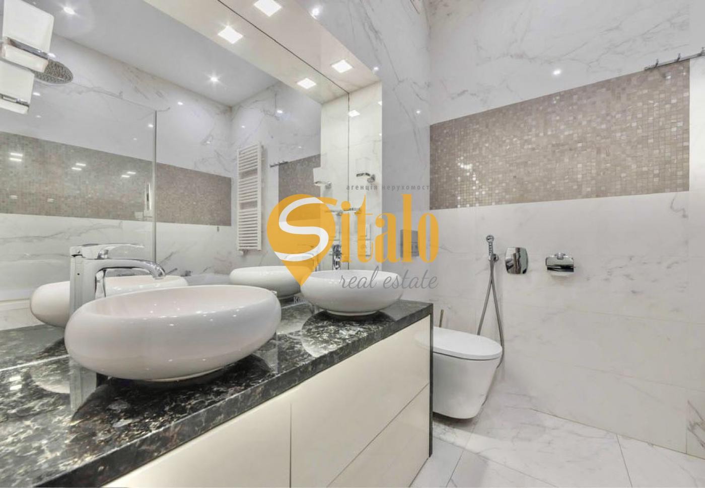 - Два санвузли: гостьовий та основний, укомплектовані сантехнікою преміум-класу, двома умивальниками та ванною.