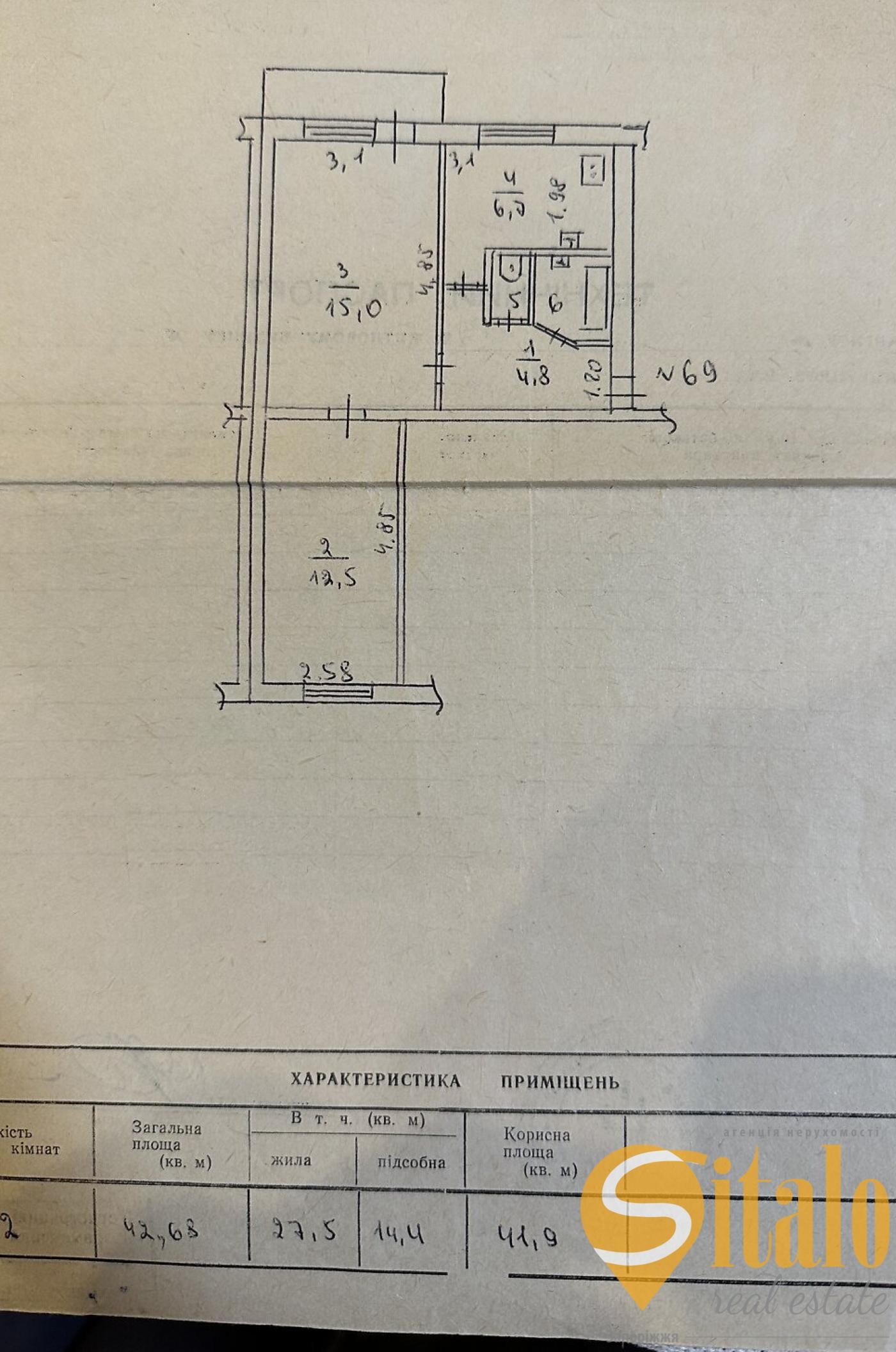 Продаж квартир Чумаченко , 2 кімнати, площа (42.68/27.5/6.7)
