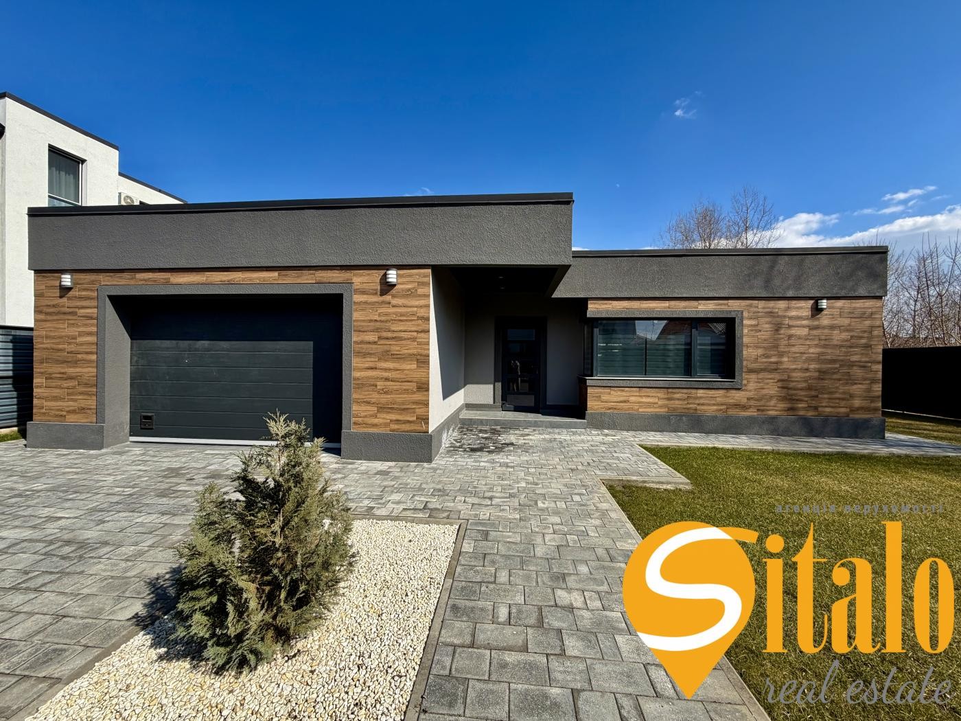 Будинок складається з великої кухні-вітальні виходом на терасу, два санвузли, три окремі кімнати, котельня і гараж в будинку.