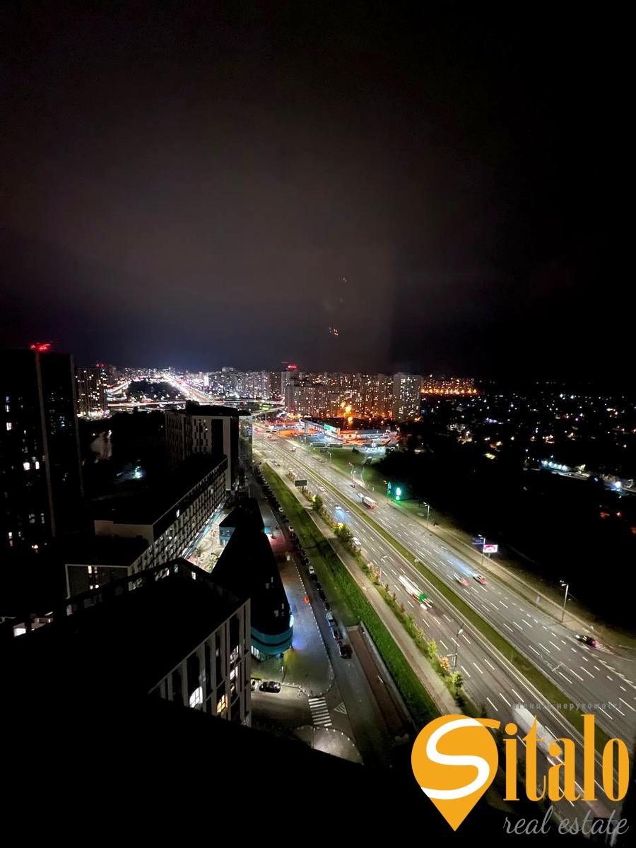 Поруч ТЦ River mall, метро Славутич , безліч кафе ресторанів та супермаркетів.