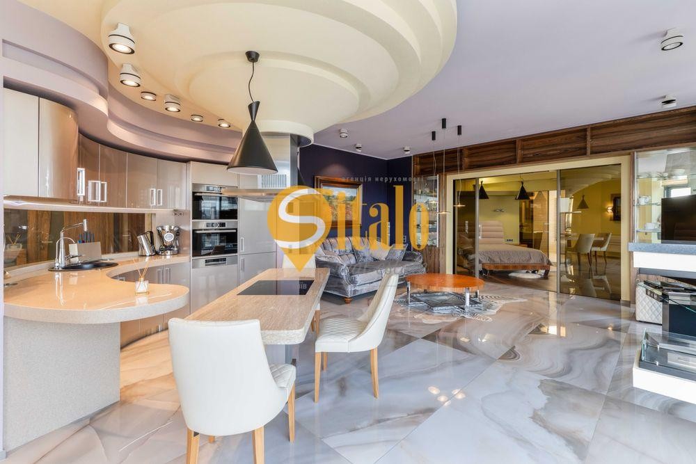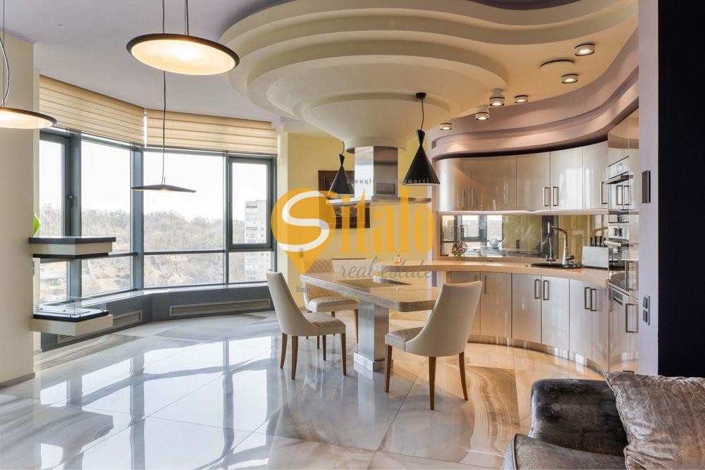 Квартира з дизайнерським ремонтом загальною площею 144 кв.м. знаходиться на 17 поверсі 28 поверхового сучасного будинку за адресою вул. Болсуновська 2