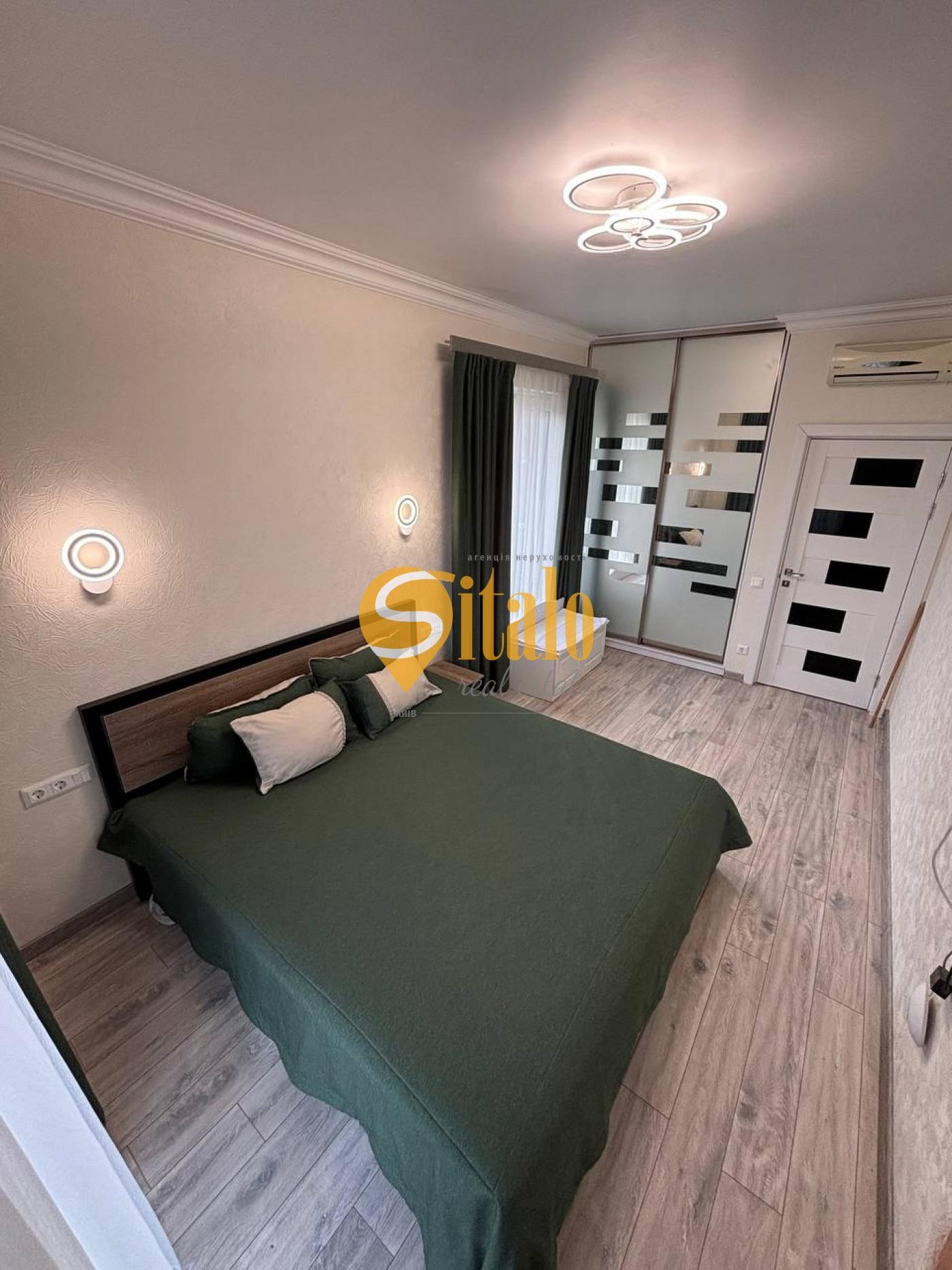 4 спальні (спальні мають двоспальні ліжка, шафи-купе, усі необхідні меблі: столи, стільці, приліжкові тумби, в деяких спальнях встановлені кондиціонери та TV) та санвузол (з ванною).