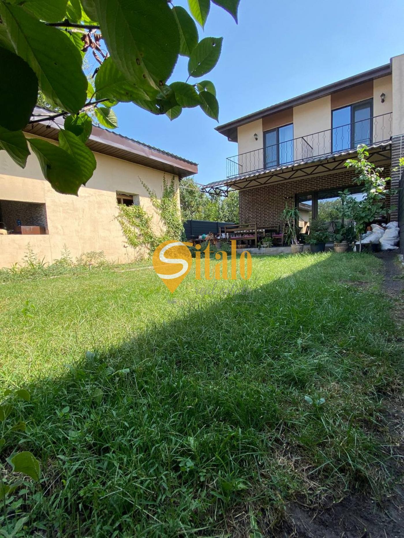 - ділянка озеленена, є велика класна зелена галявина для заняттям йогою або фітнесом. На ділянці ростуть молоді дерева та квіти;
