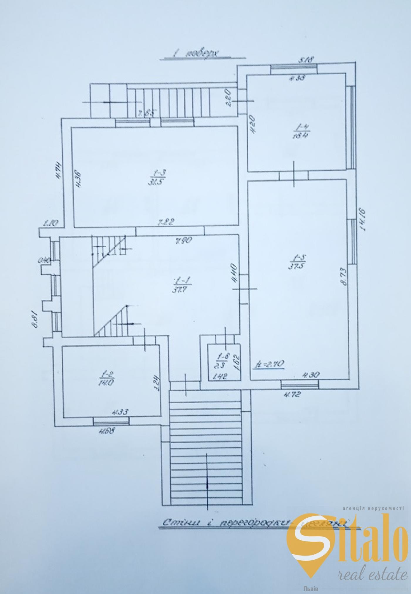 1-й поверх: просторий хол (ресепшн/зона очікування), 3 кабінети, кухня, санвузол