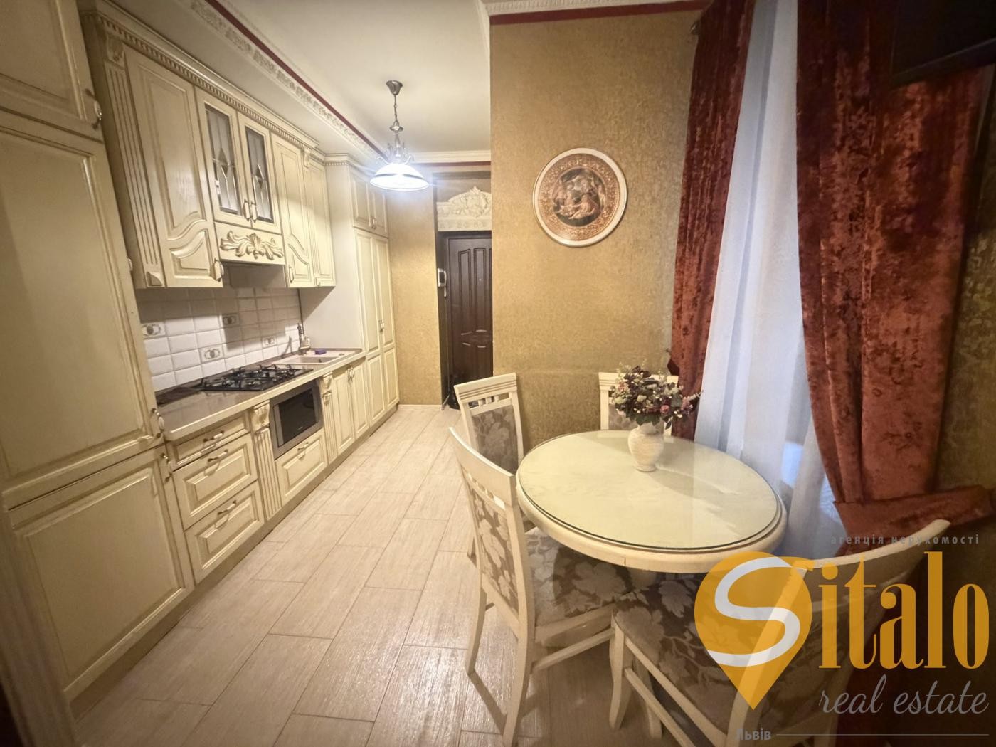 Загальна площа - 45 м , площа кухні - 12 м.