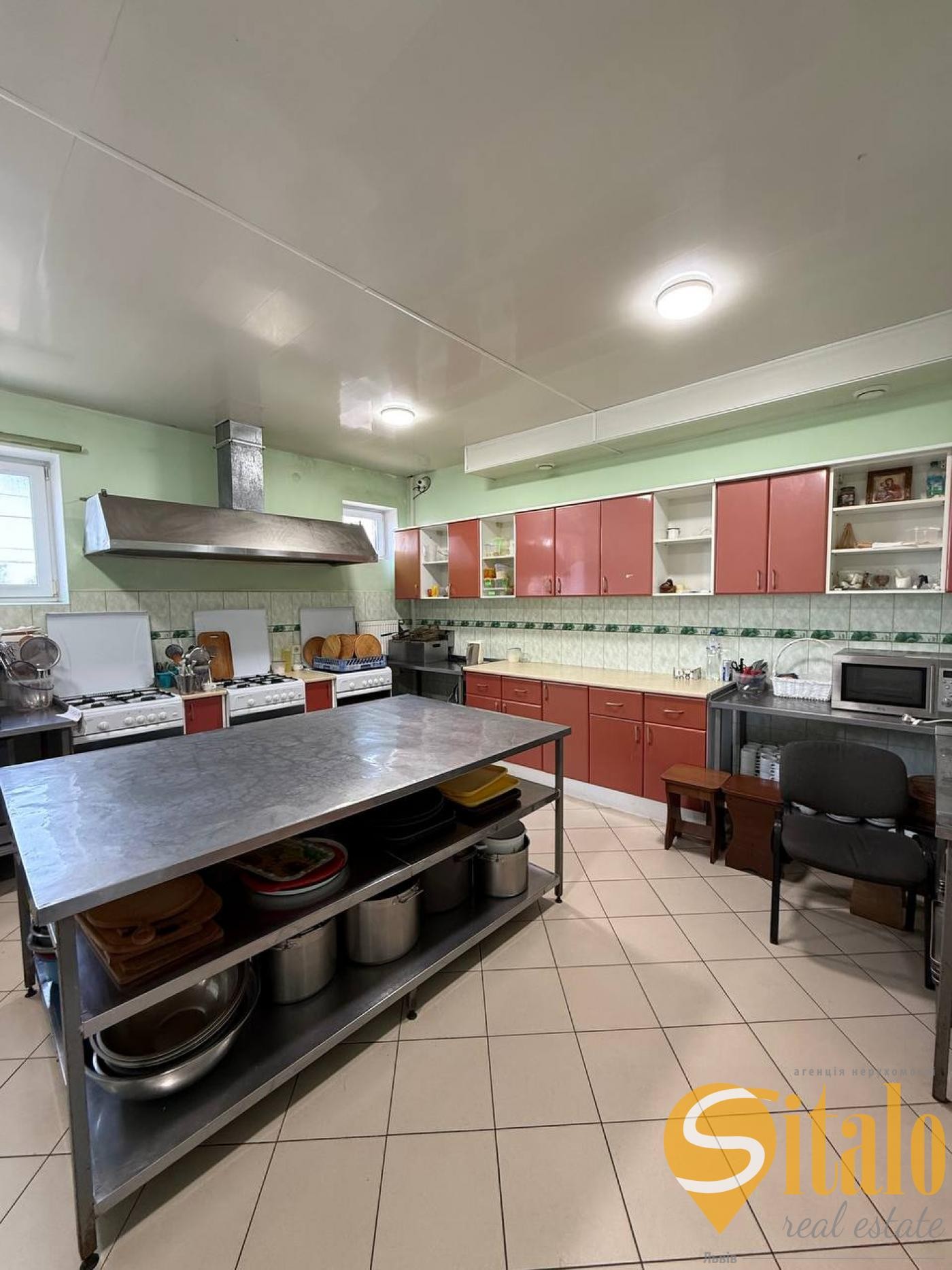 на другому рівні великий зал та кабінети,санвузол,обладнана професійна кухня