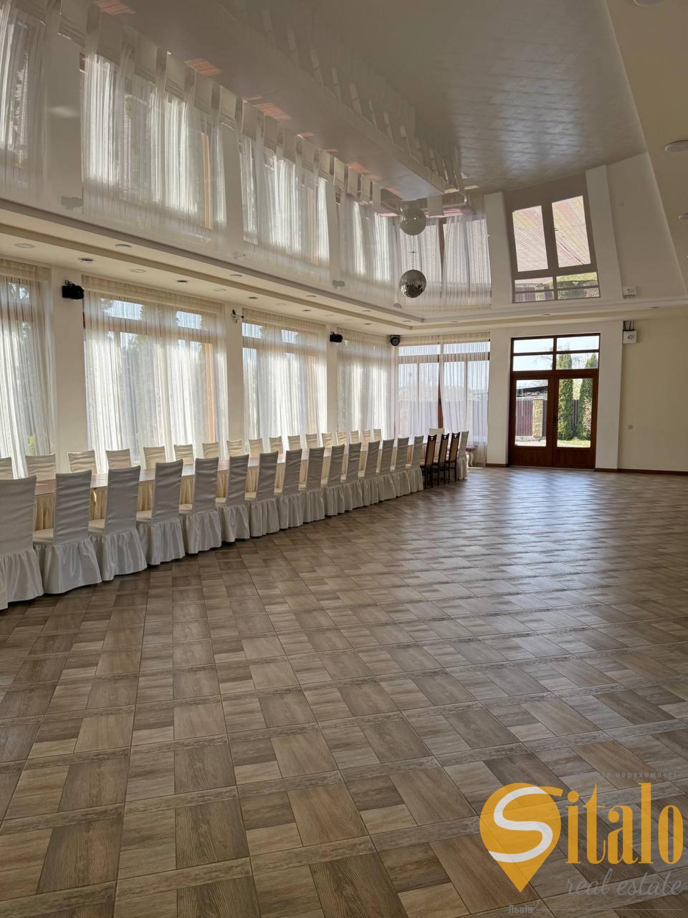 Об’єкт раніше успішно функціонував як банкетний комплекс (весілля, корпоративи, події), що дозволяє швидко відновити діяльність без значних інвестицій