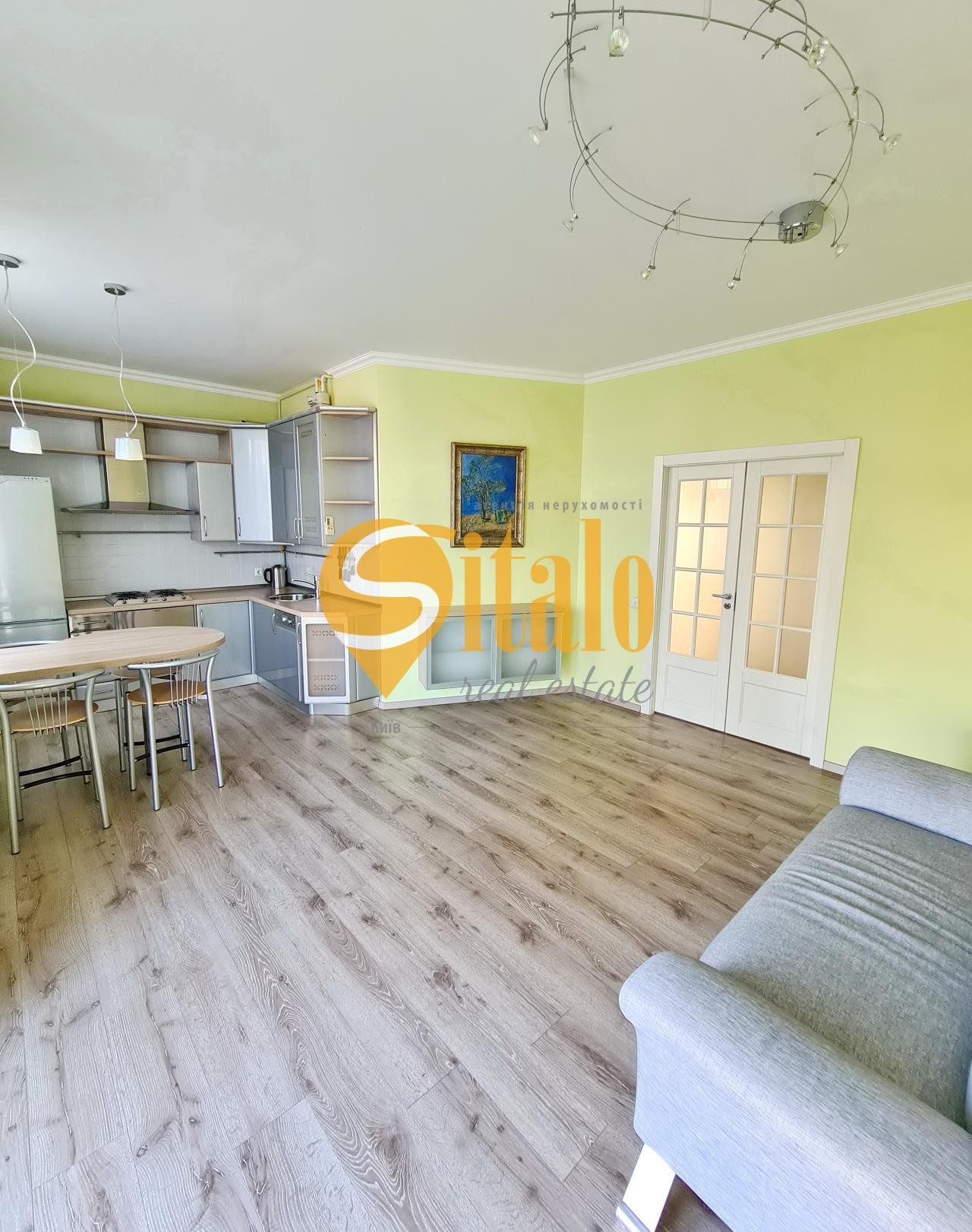 Квартира площею 110 кв.м, кухня-вітальня, спальня з гарберобом, ще одна кімната - вітальня з робочою зоною та окремим санвузлом або спальня, санвузол.