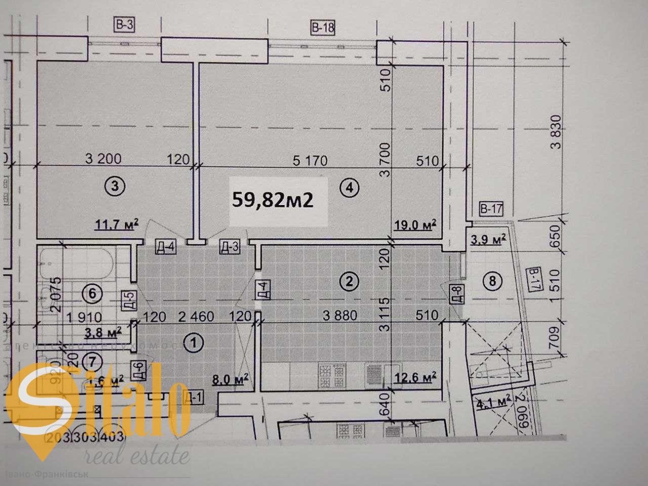 Загальна площа квартири 58.7 м.кв. згідно з замірами БТІ.