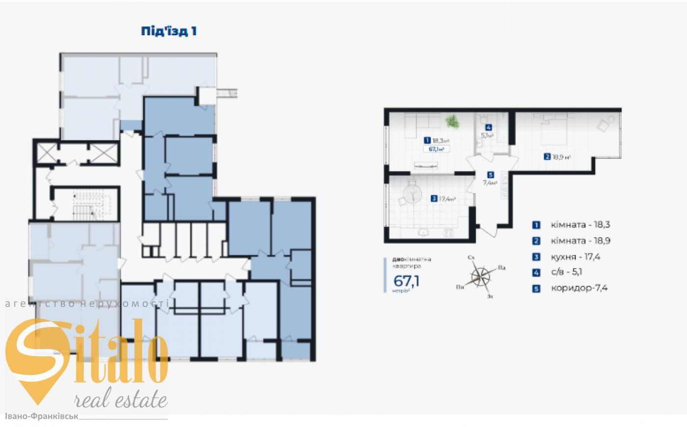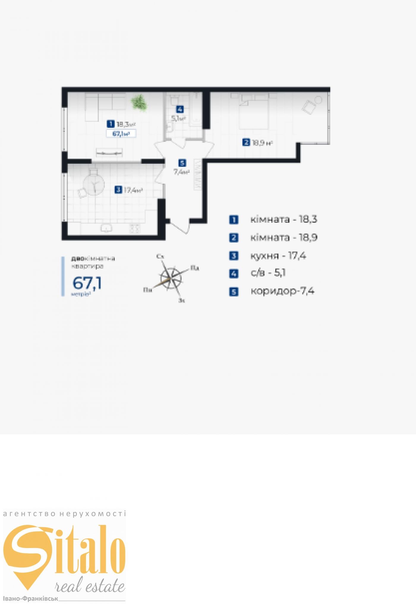 Загальна площа 67.1 м.кв