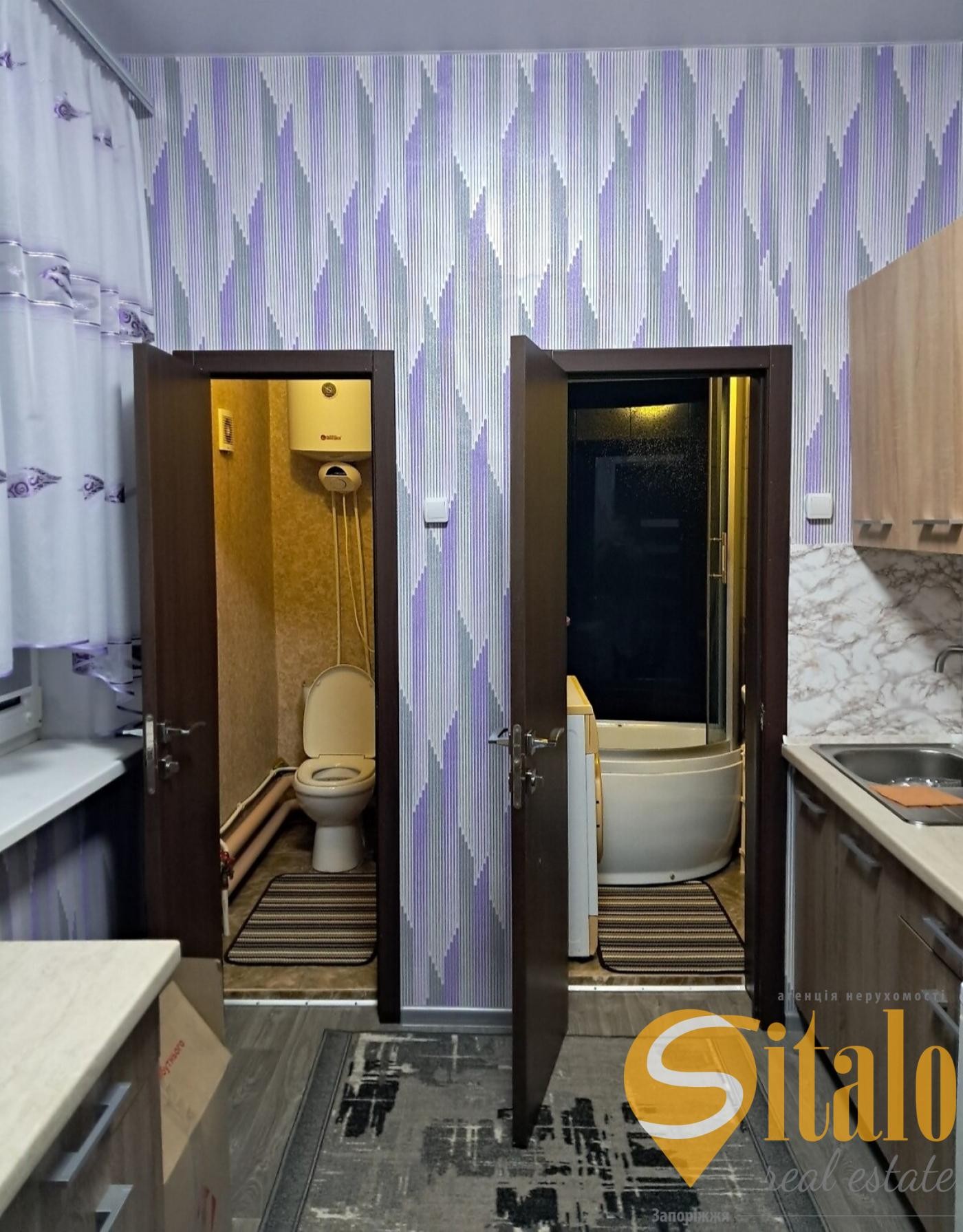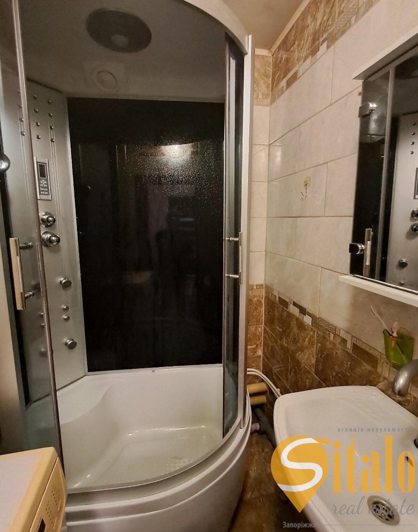 - Санвузол: Сучасний душовий бокс та бойлер для гарячої води.