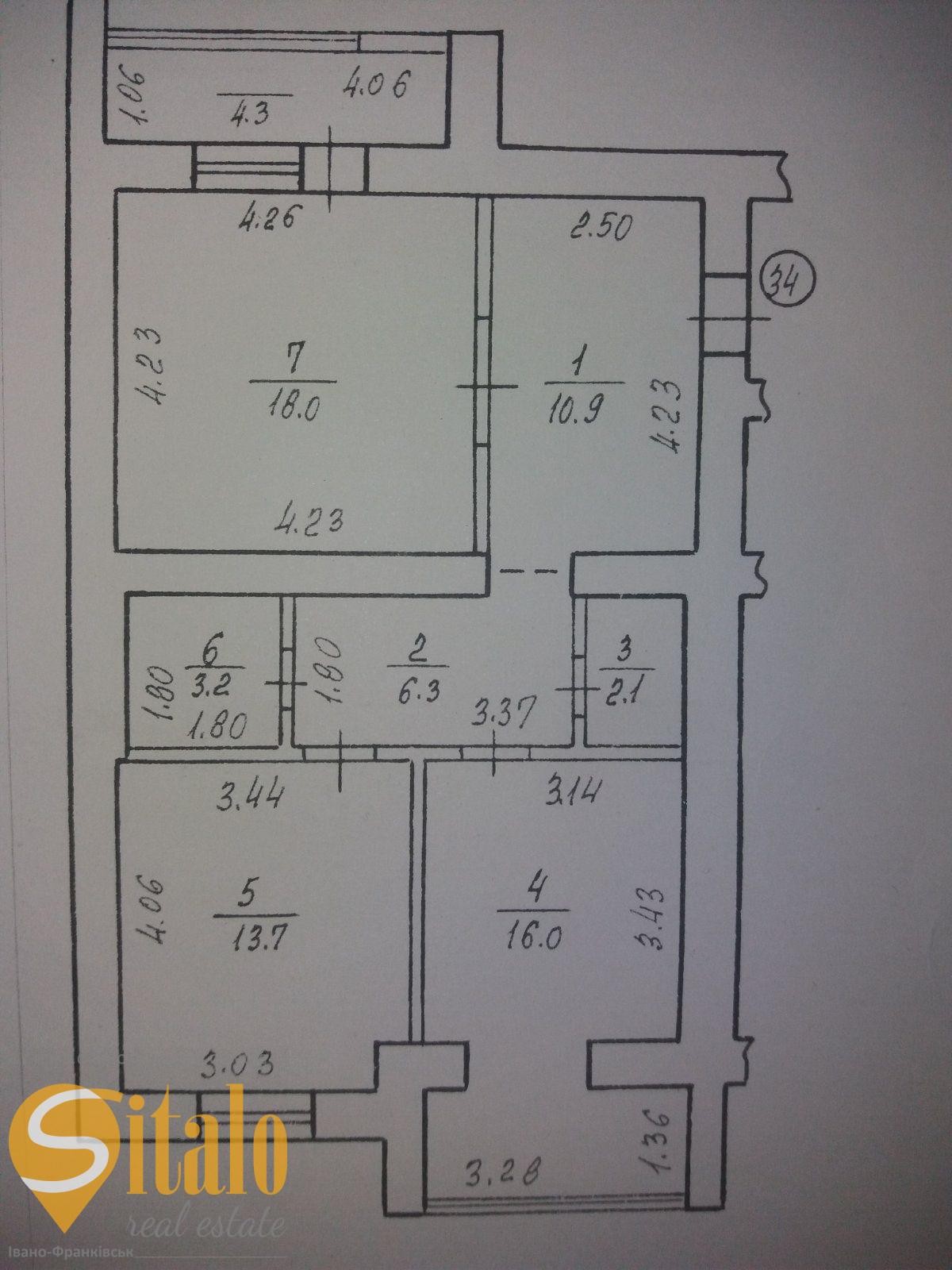 Загальна площа 74,5 кв.м., площа кухні 16 кв.м.