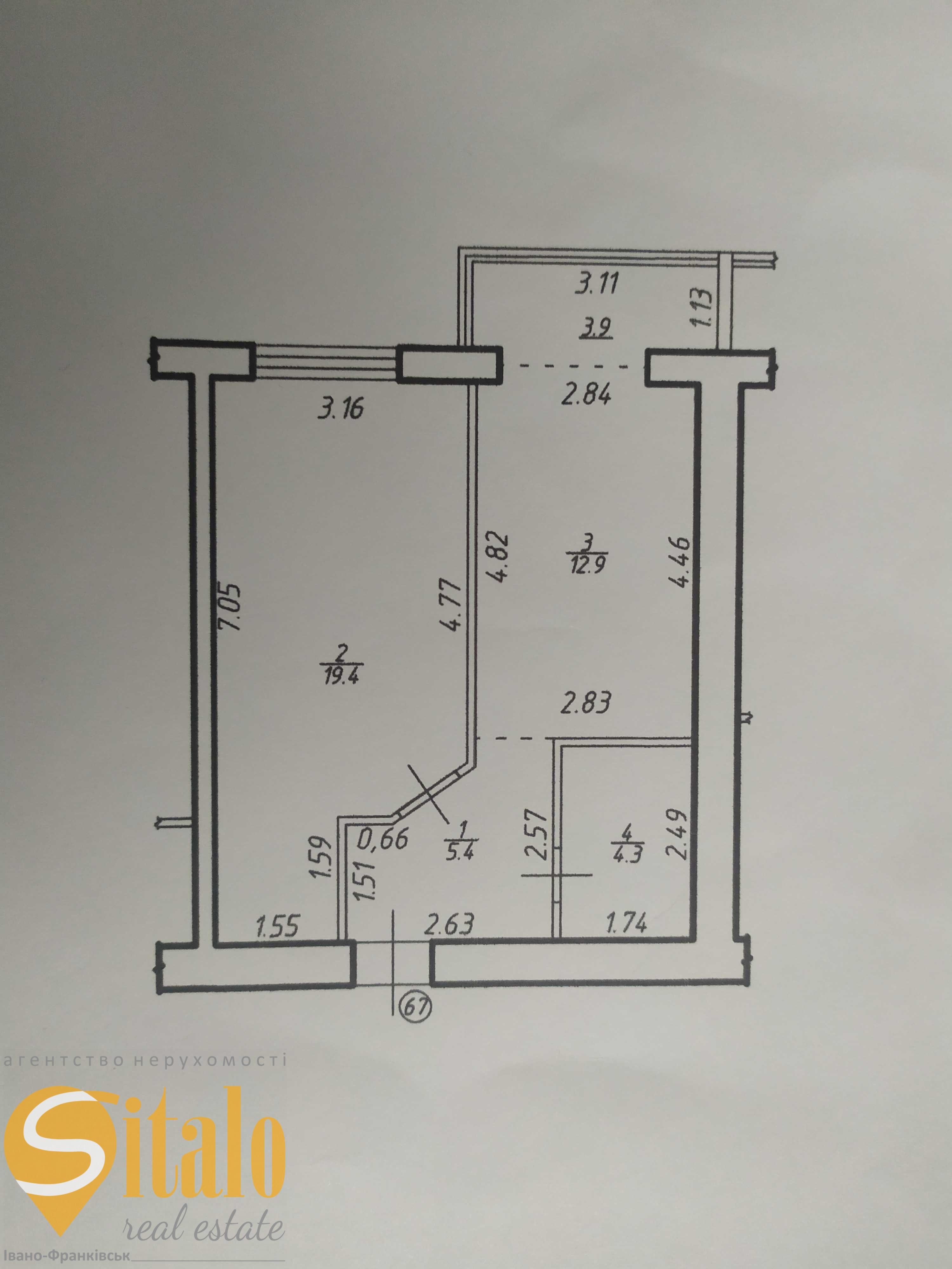Загальна площа квартири 45 кв.м, кухня 20кв.м.