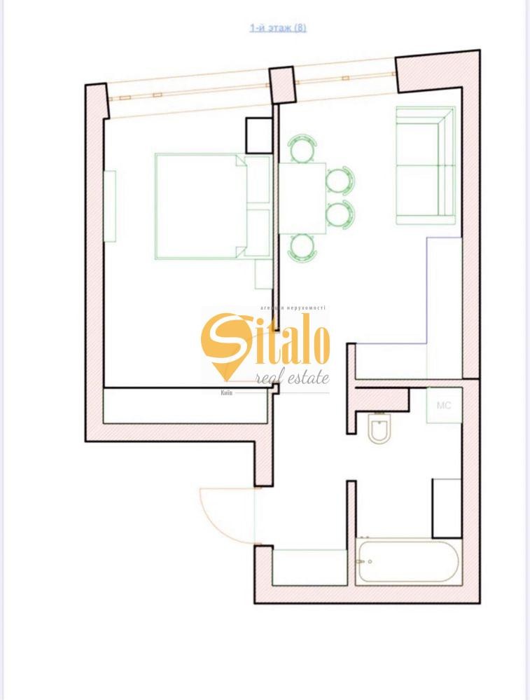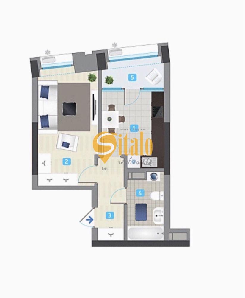 Планування: спальня кімната, кухня-вітальня, ванна кімната з санвузлом.