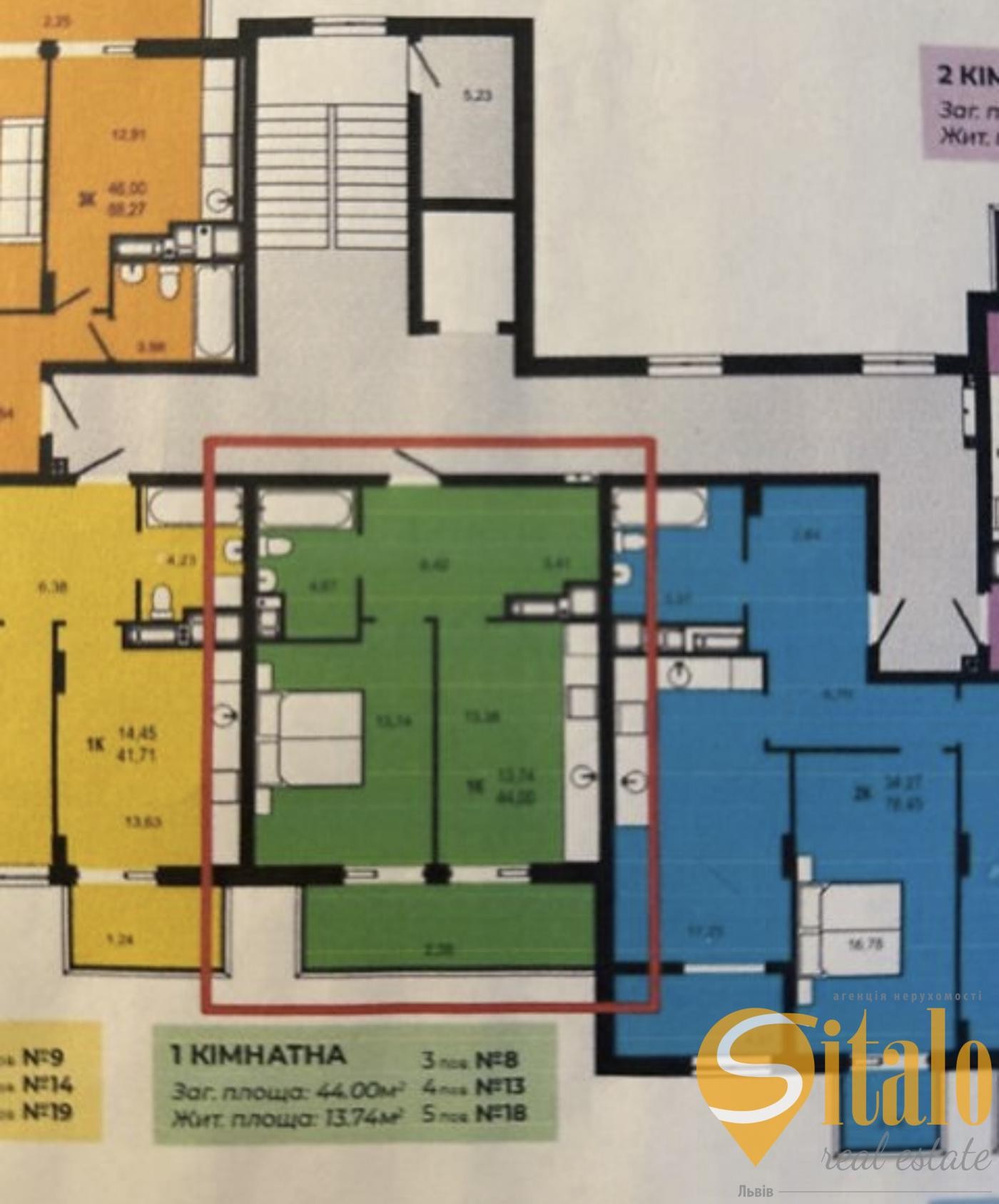 Житлова — 13.74 м²