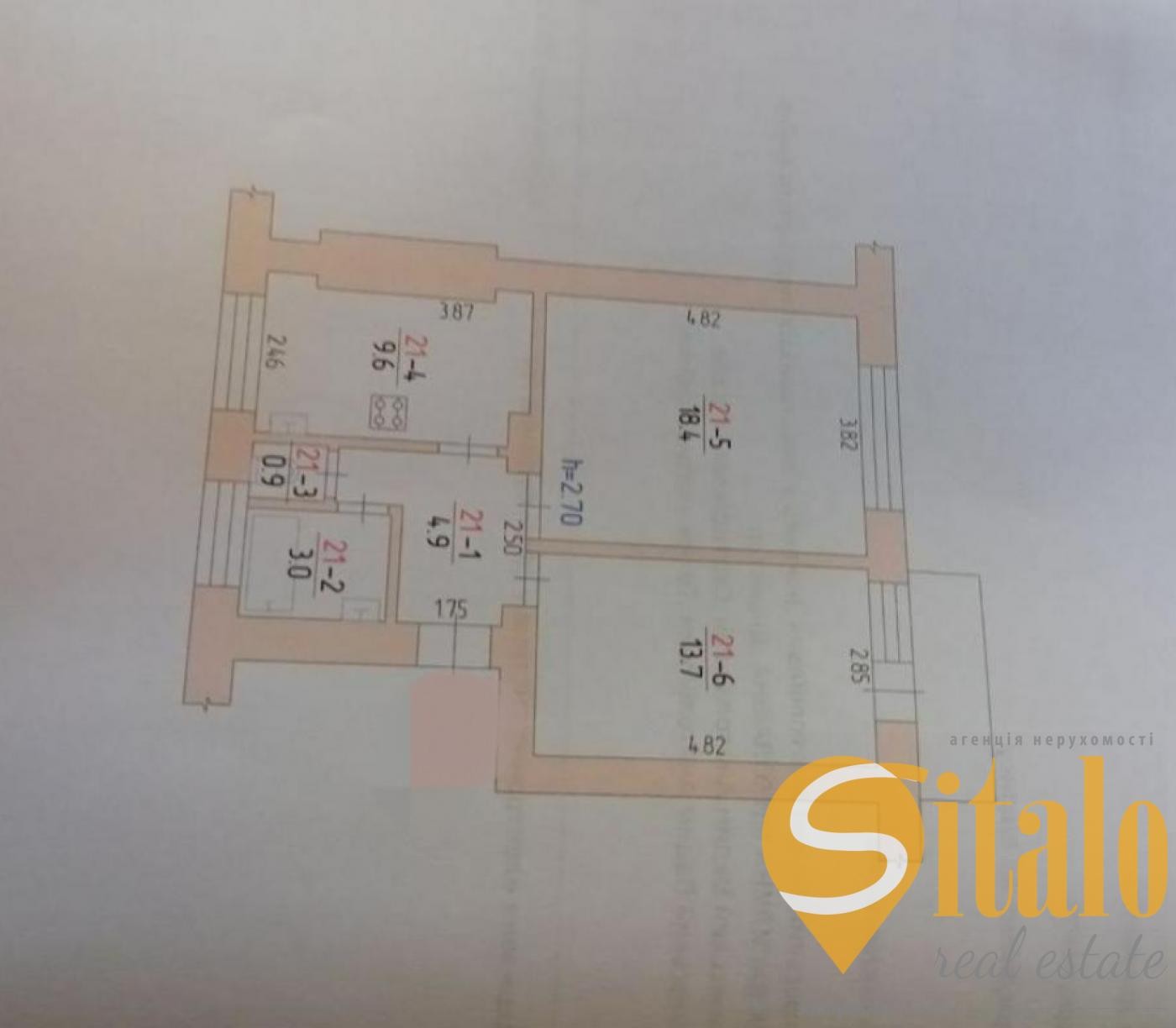Продаж квартир Богдана Хмельницького , 2 кімнати, площа (52.9/32.1/10)