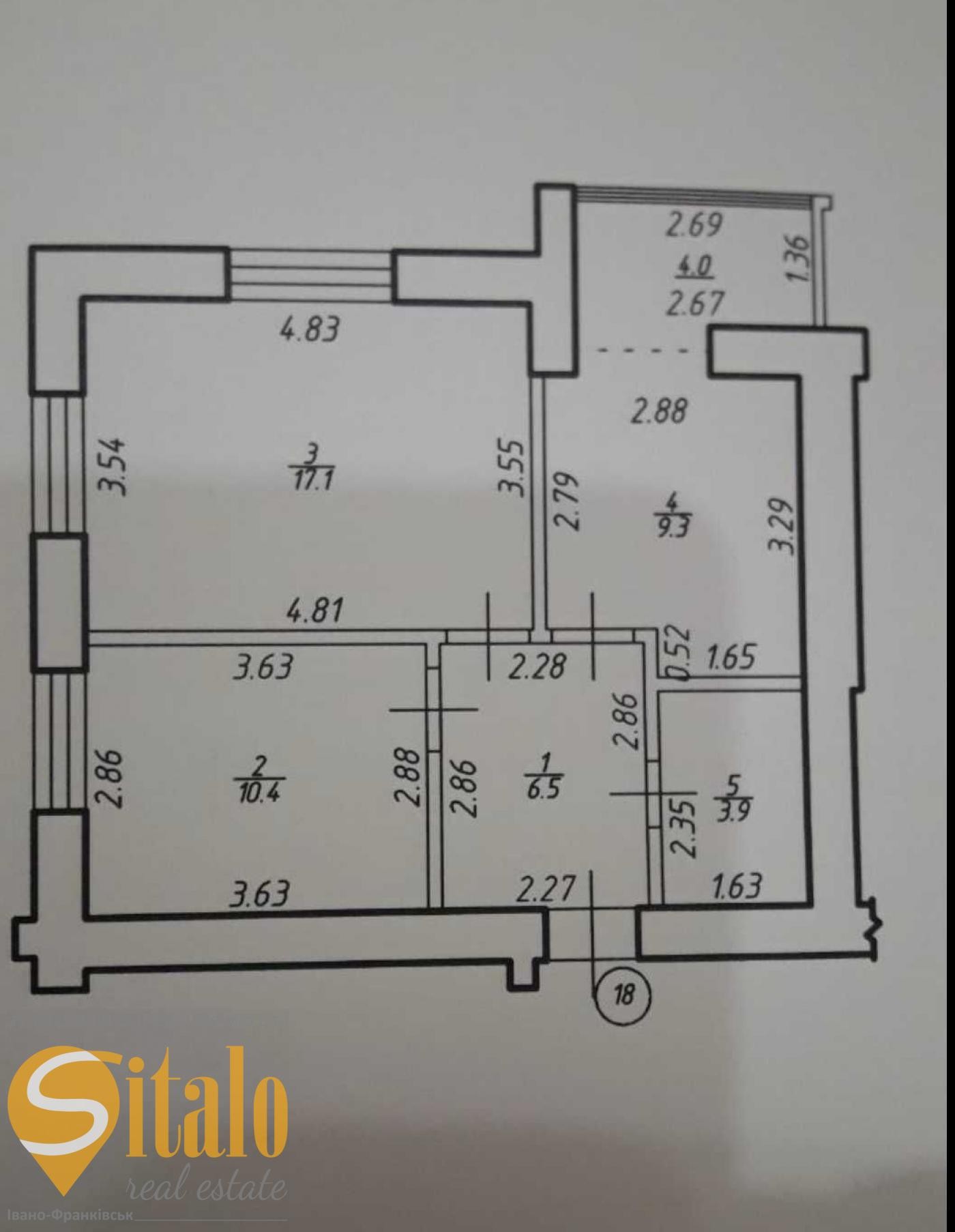 Загальна площа квартири 52 кв.м, кухня 11кв.м.
