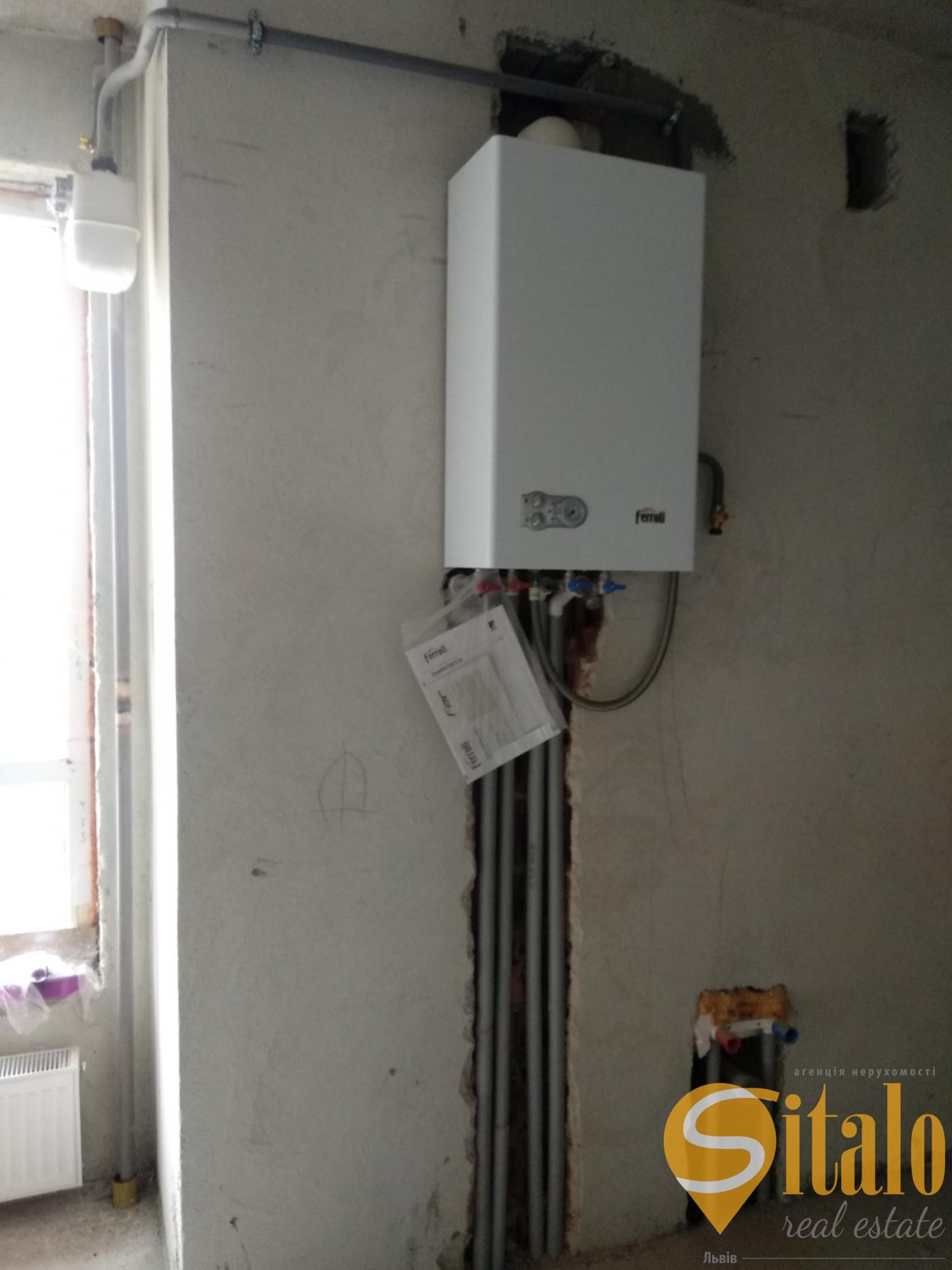 Встановлений двохфункційний газовий котел та радіатори.