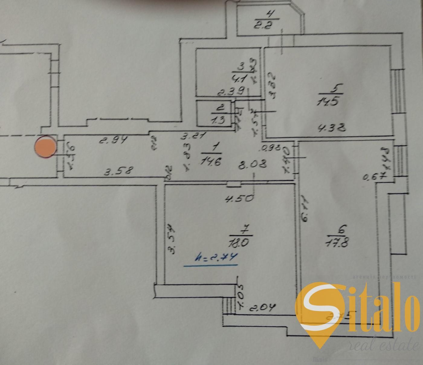 Загальна площа квартири 72,5 кв.м. Житлова 32,5 кв.м. Кухня 18 кв.м.