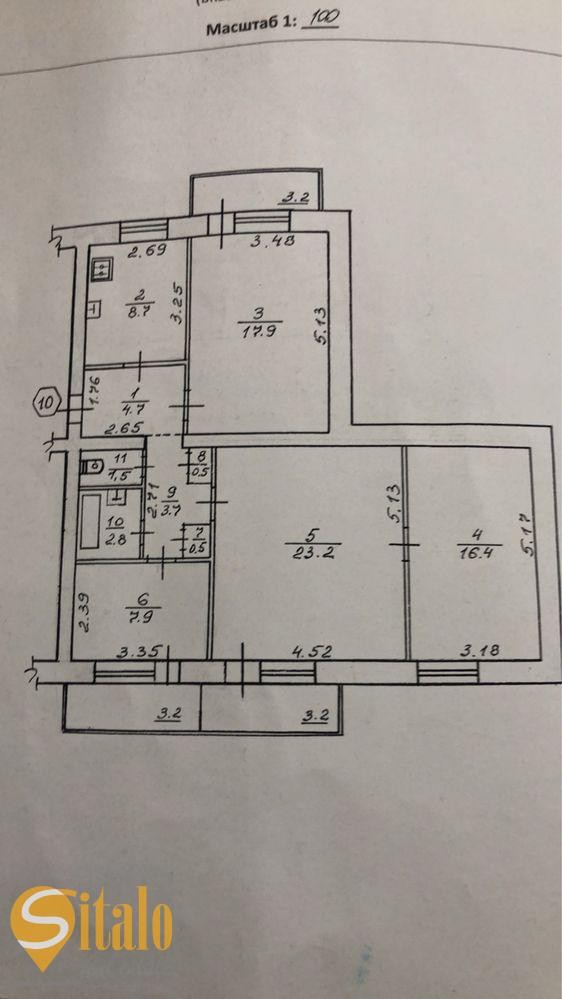 Загальна площа квартири 96 кв.м, кухня 8.7 кв.м.