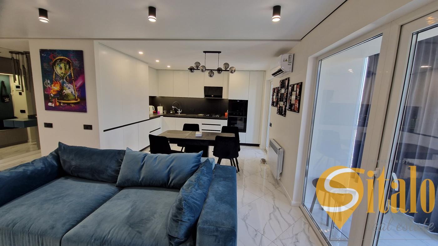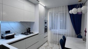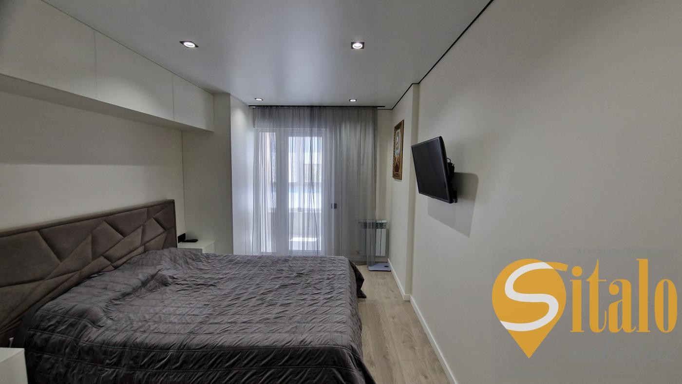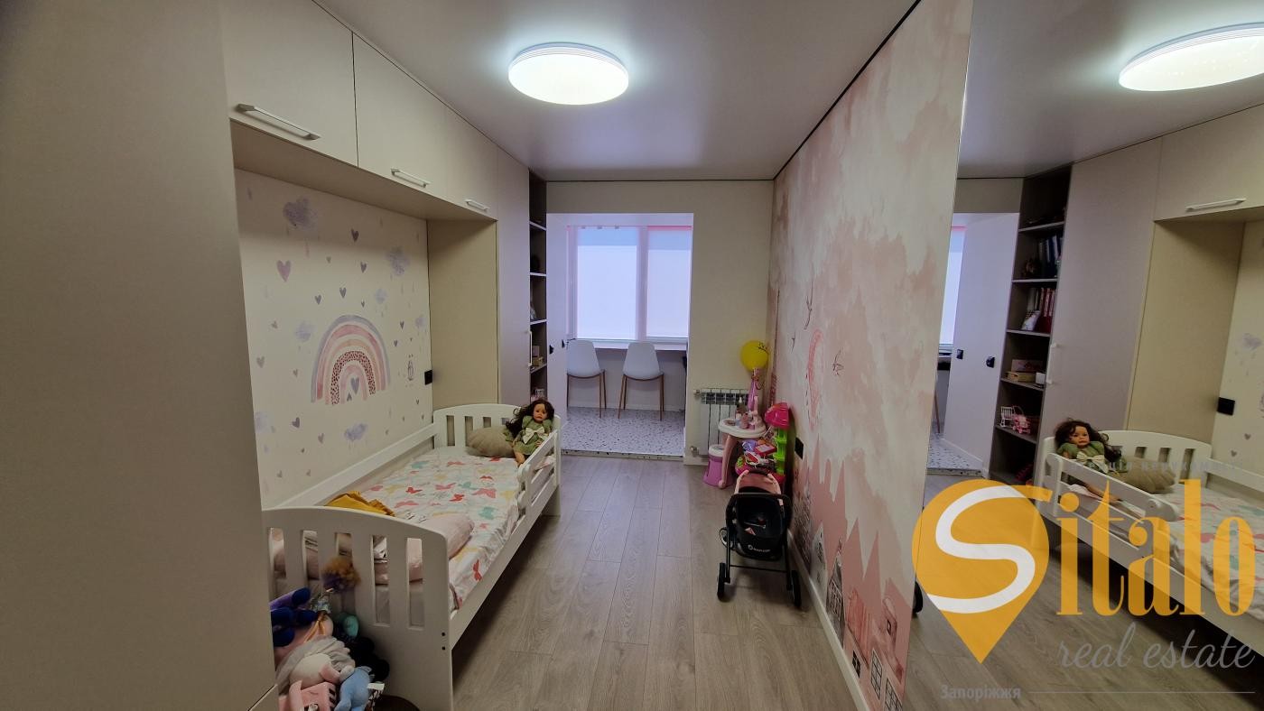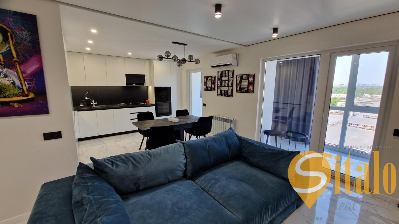 Пропонується на продаж шикарна, простора, чотирикімнатна квартира на восьмому поверсі дев'ятиповерхового, цегляного будинку загальною площею 80 кв. У квартирі виконано сучасний, якісний ремонт 24роки. Три окремі кімнати та простора кухня-студія. Два санвузли. Два французькі балкони. Лоджія поєднана із кімнатою. Підлоги у вітальні, ванній, на балконах, лоджії з електропідігрівом. Продається з меблями та технікою. Розташована поряд із школами, дитячими садками, магазином, зупинкою транспорту, автостоянкою. Торг.