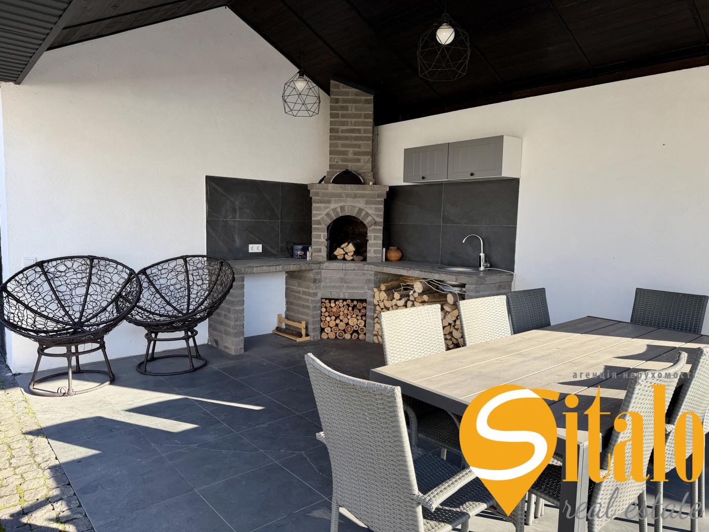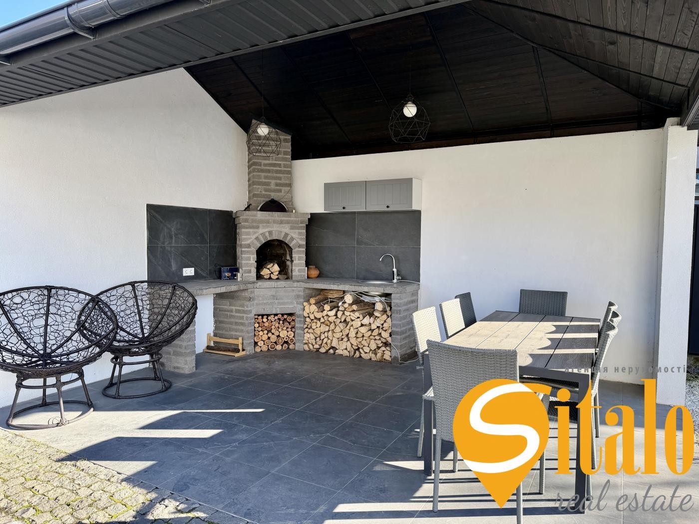Загальна площа: будинок 165 кв.м. тераса барбекю 40 кв.м. навіс на 2 авто 32 кв.м.