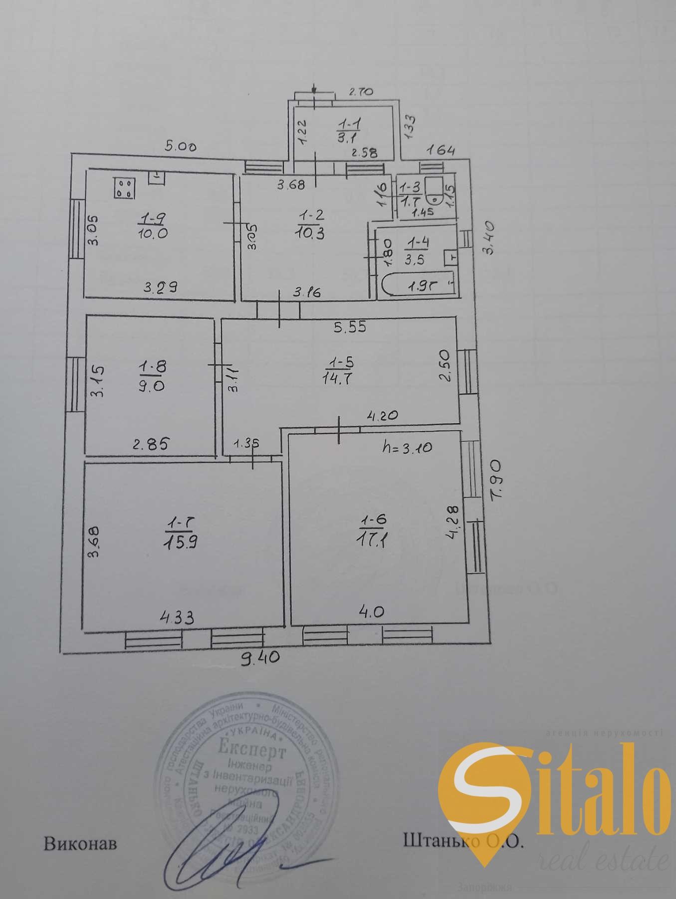 - Площа: Загальна 85.3 м.кв. / 4 кімнати / Кухня 10 м.кв.