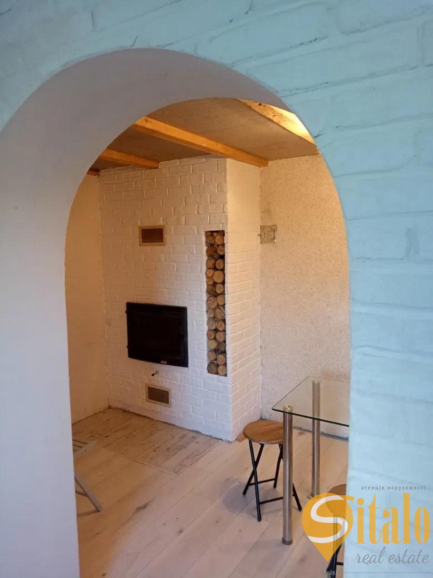 Цокольний поверх: вітальня з діючим каміном, кухня, санвузол.