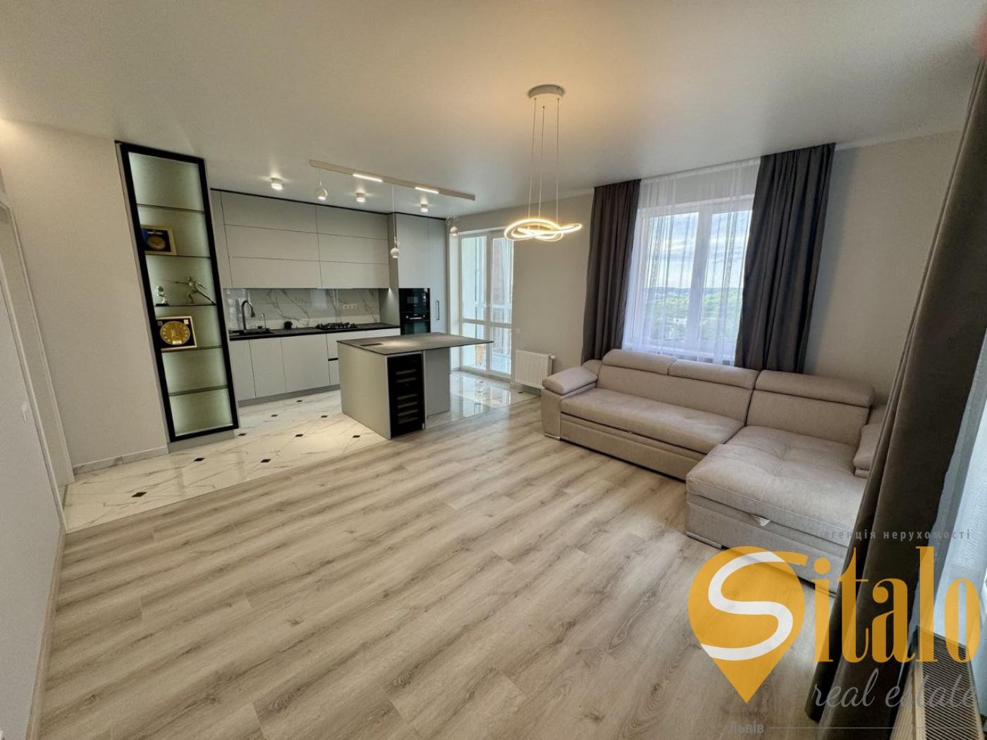 - Велика кухня-вітальня з двома відкритими балконами.