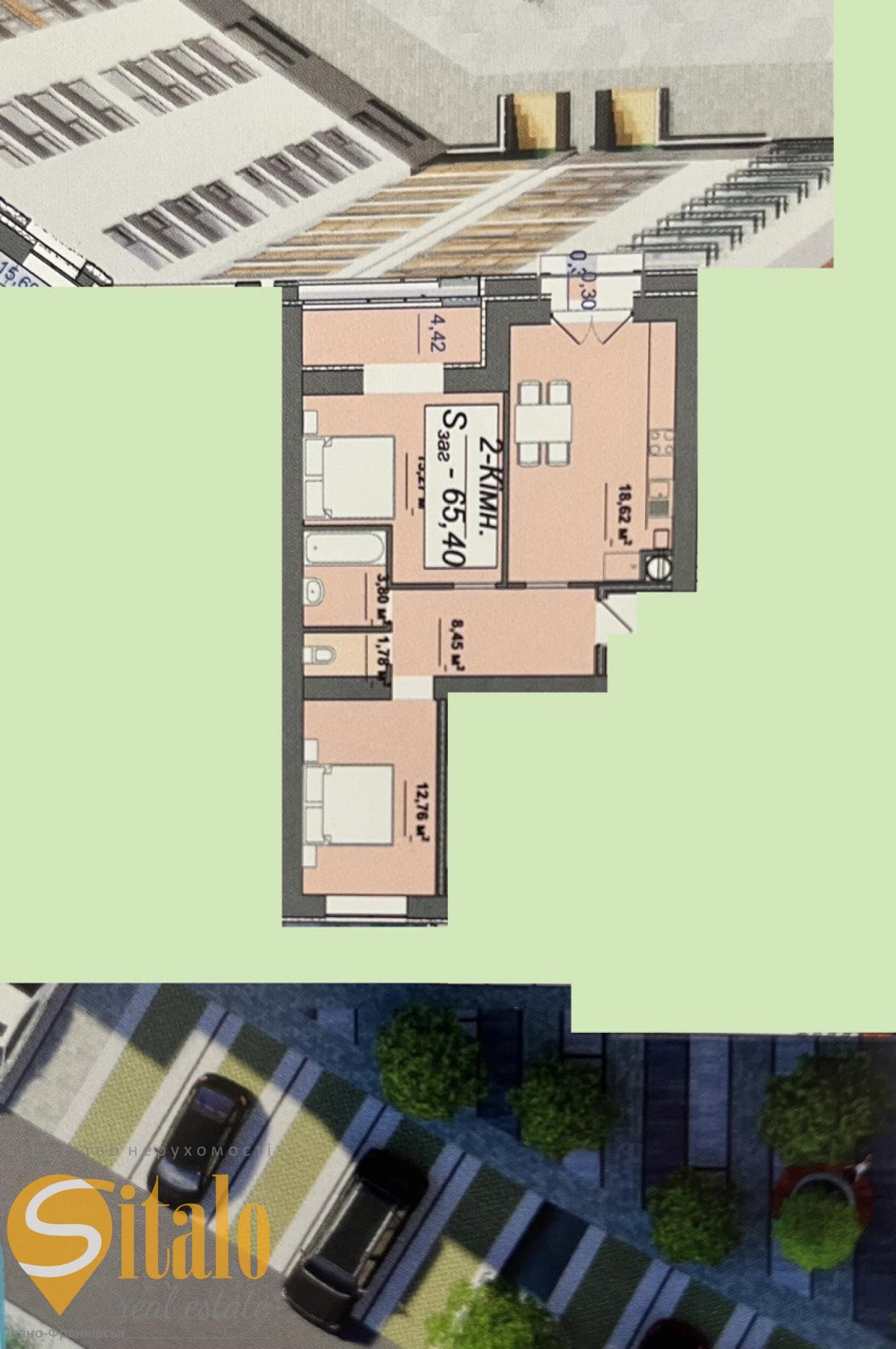 Продаж квартир пров. Ключовий , 2 кімнати, площа (65.4/15/18.6)