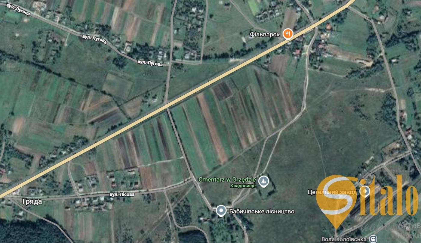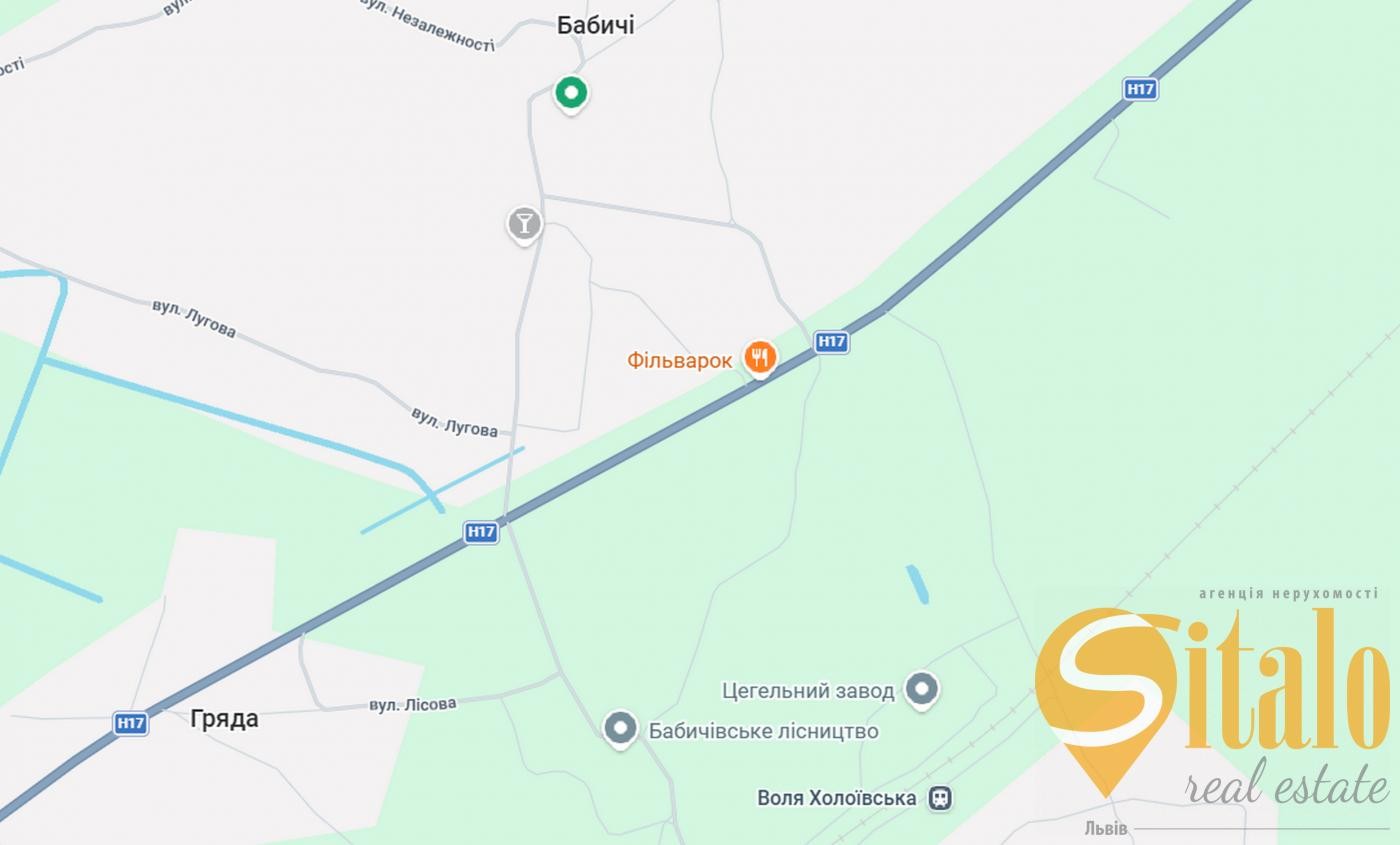 Продається перспективна земельна ділянка загальною площею 1.56 га у селі Бабичі (Вузлове). Об'єкт розташований безпосередньо вздовж інтенсивної траси національного значення Н17 (Львів - Радехів - Луцьк).