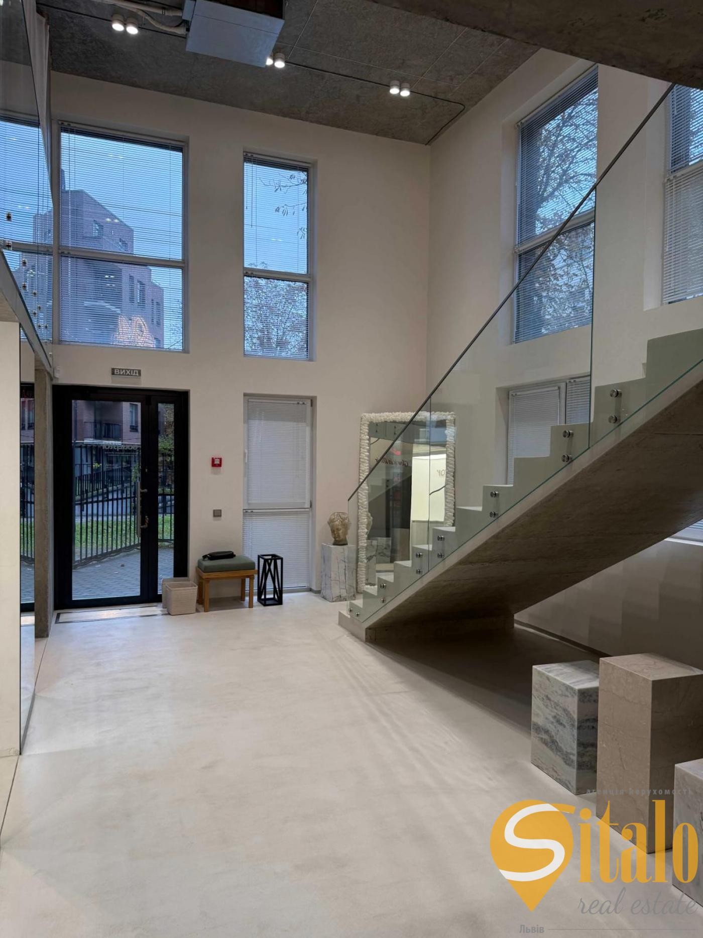Розташоване на першому поверсі,фасадний вхід та вітрини