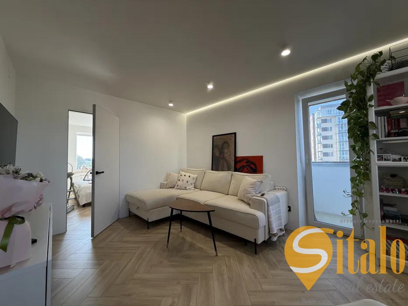 Світлий інтер’єр у сучасному стилі, багато простору та сонця (кутова квартира – світло цілий день).