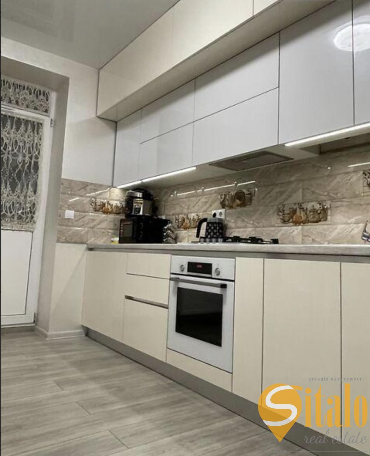 Кухня з ремонтом та технікою і меблями, вихід у балкон