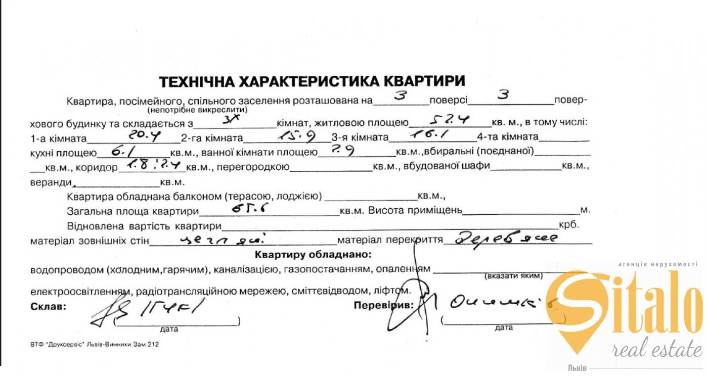 Продаж квартир Жовківська 7, 3 кімнати, площа (65.6/52.4/6.1)