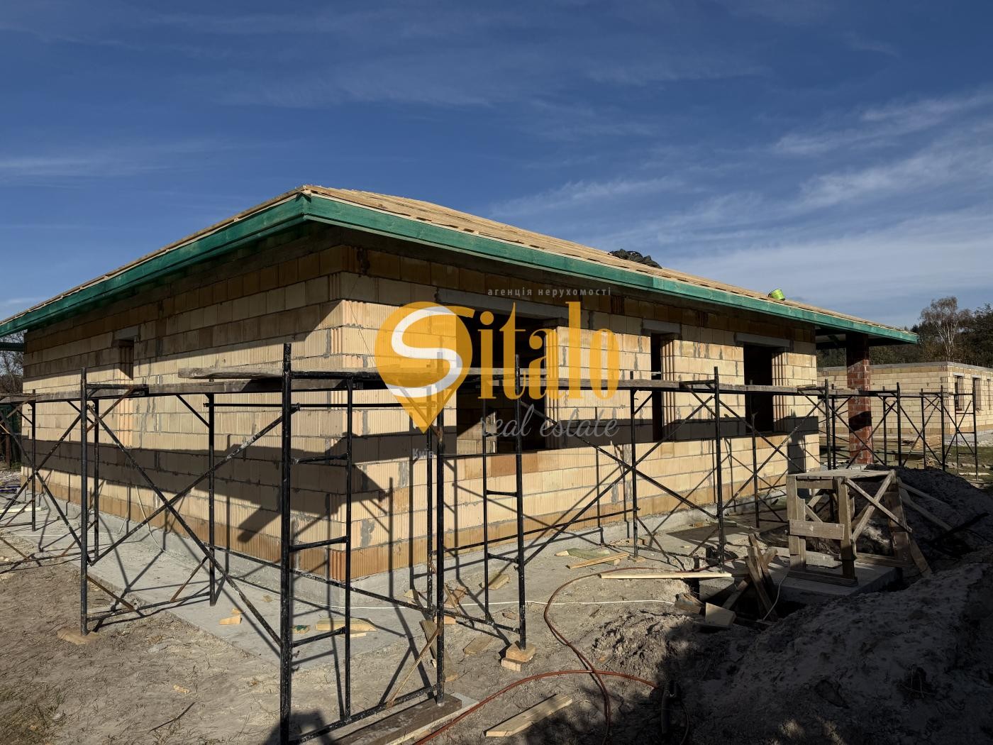 Збудований з керамоблоку (250 мм) та утеплений пінопластом (150 мм) – теплий і надійний.