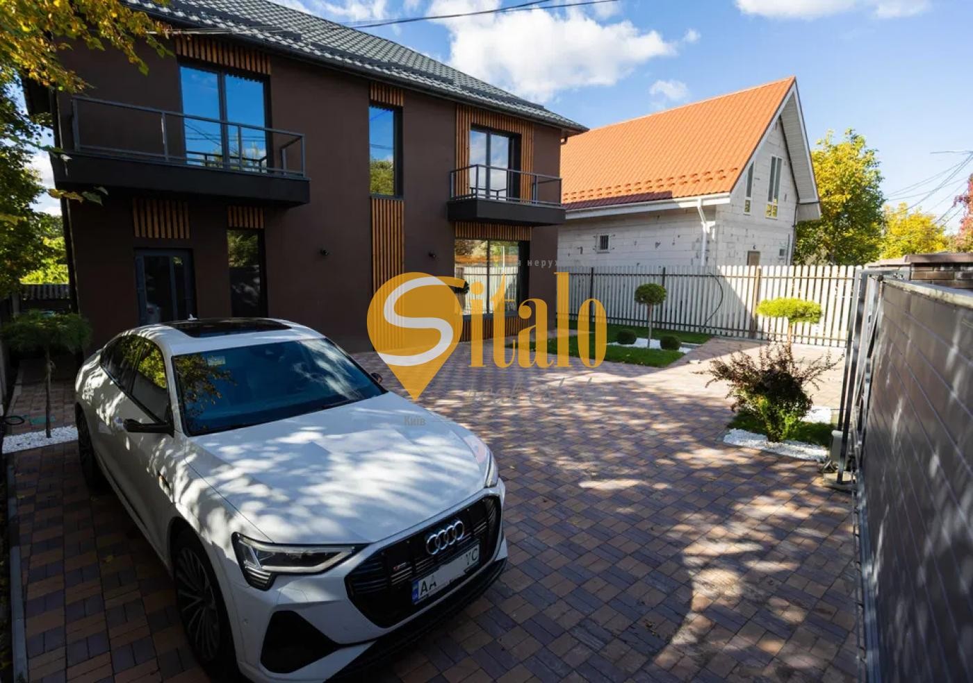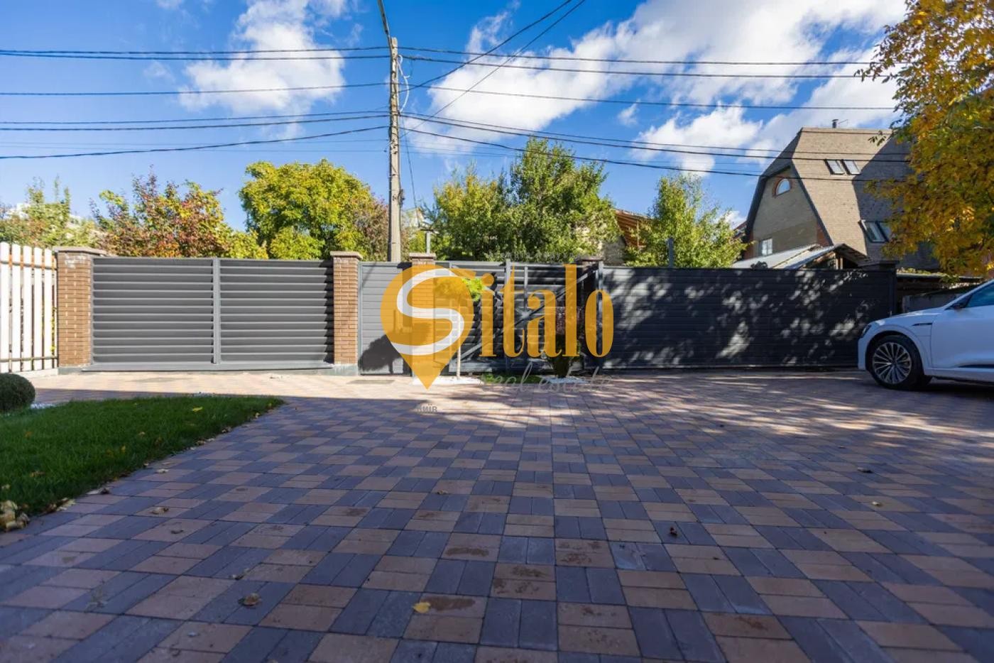 6-метрові відкатні ворота з автоматикою COMUNELLO, що дозволяють двом авто заїжджати без перешкод.