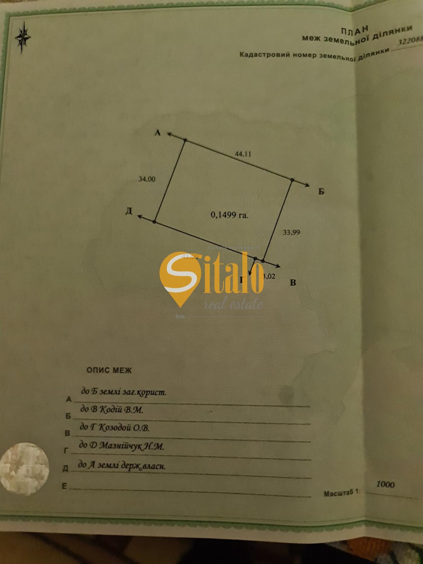 Ділянка площею 15 соток в новому масиві с. Вишеньки.