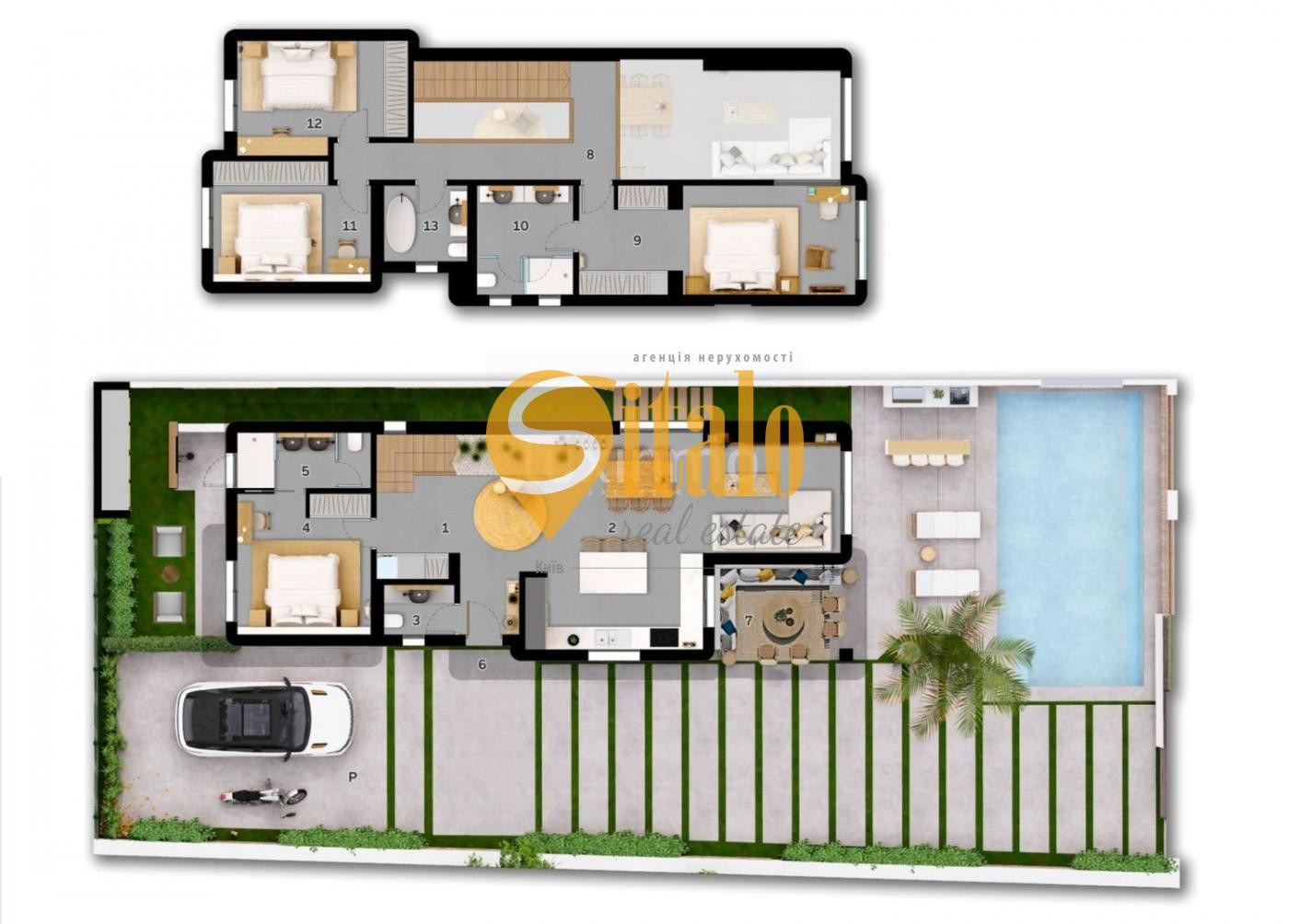 Пропонуємо до продажу двоповерховий будинок загальною площею 206 кв.м, житлова площа – 168 кв.м. Планування включає чотири спальні, чотири ванні кімнати, простору вітальню-їдальню, поєднану з кухнею та виходом на терасу. У будинку виконано капітальний ремонт із якісних матеріалів. Кухня обладнана вбудованими меблями, у спальнях встановлені шафи-купе, у ванних – високоякісна сантехніка. Завдяки великим панорамним вікнам будинок наповнений денним сонячним світлом протягом усього дня, а для приватності встановлені електричні жалюзі.