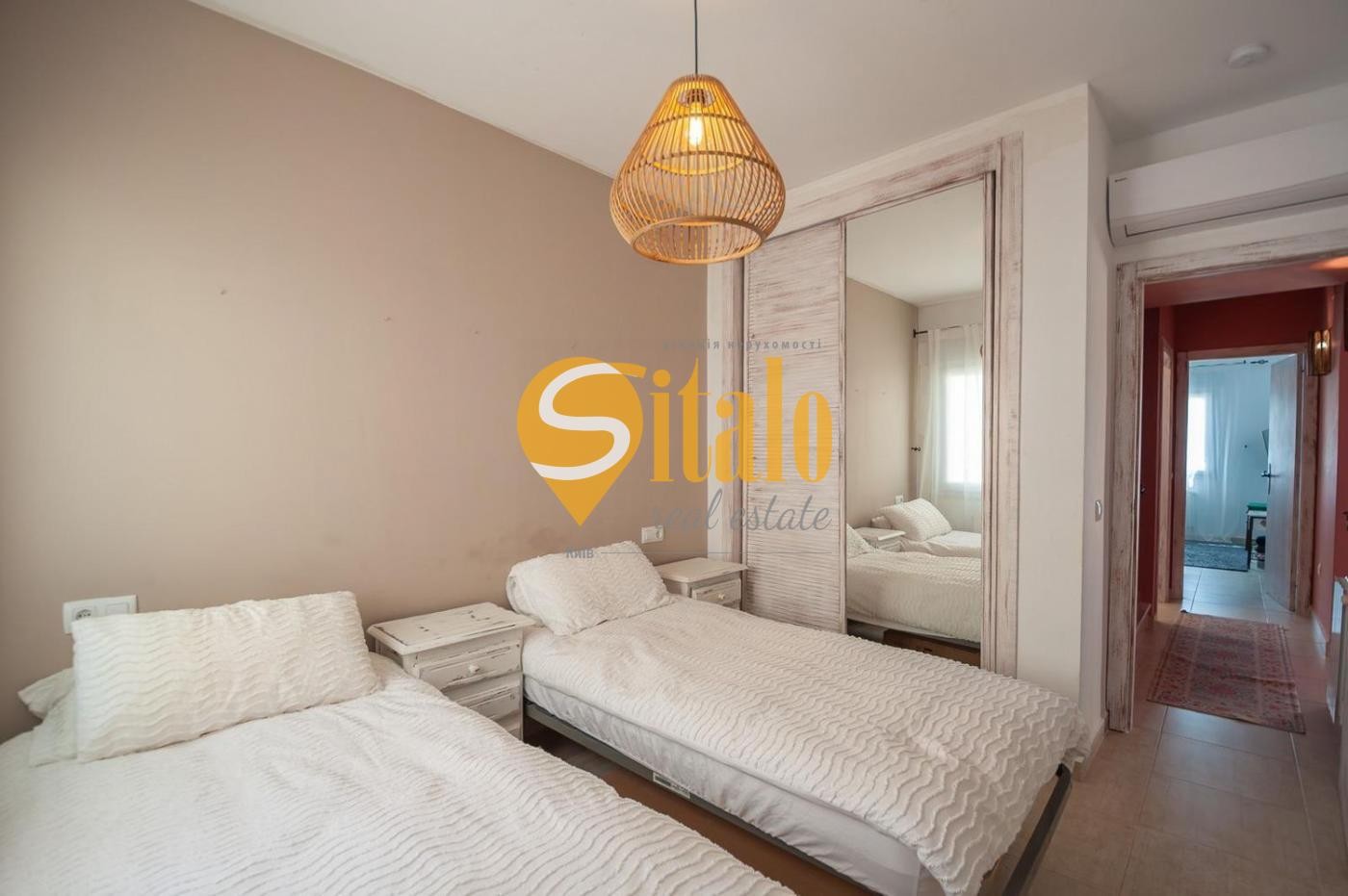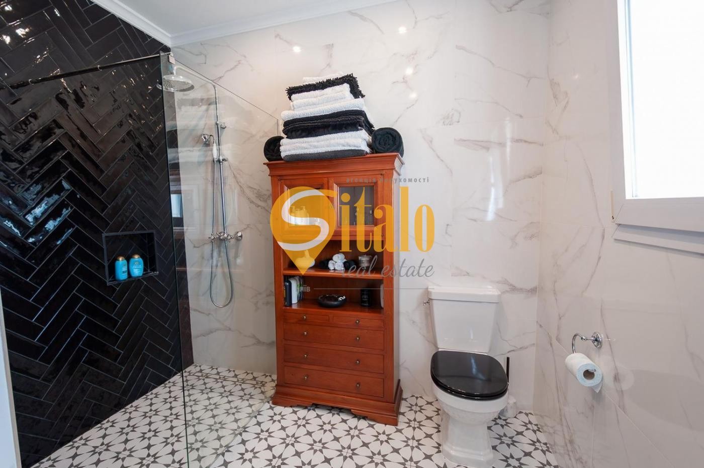 Кожна деталь інтер’єру продумана до дрібниць. Головна спальня з власною ванною кімнатою розташована на верхньому поверсі — це забезпечує приватність та максимальний комфорт. З тераси відкривається захоплюючий вид на море.